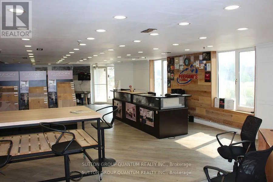 Clean Industrial Unit with Direct Exposure on Royal Windsor Drive. Currently used as a Flooring and Design Centre with a Large Showroom. 2nd Floor Mezzanine of approximately 1000 sq ft (not part of the sq ft) offers a Private Office and additional Washroom. This is a wide Unit with many Windows allowing for lots of natural light. Unit is completely