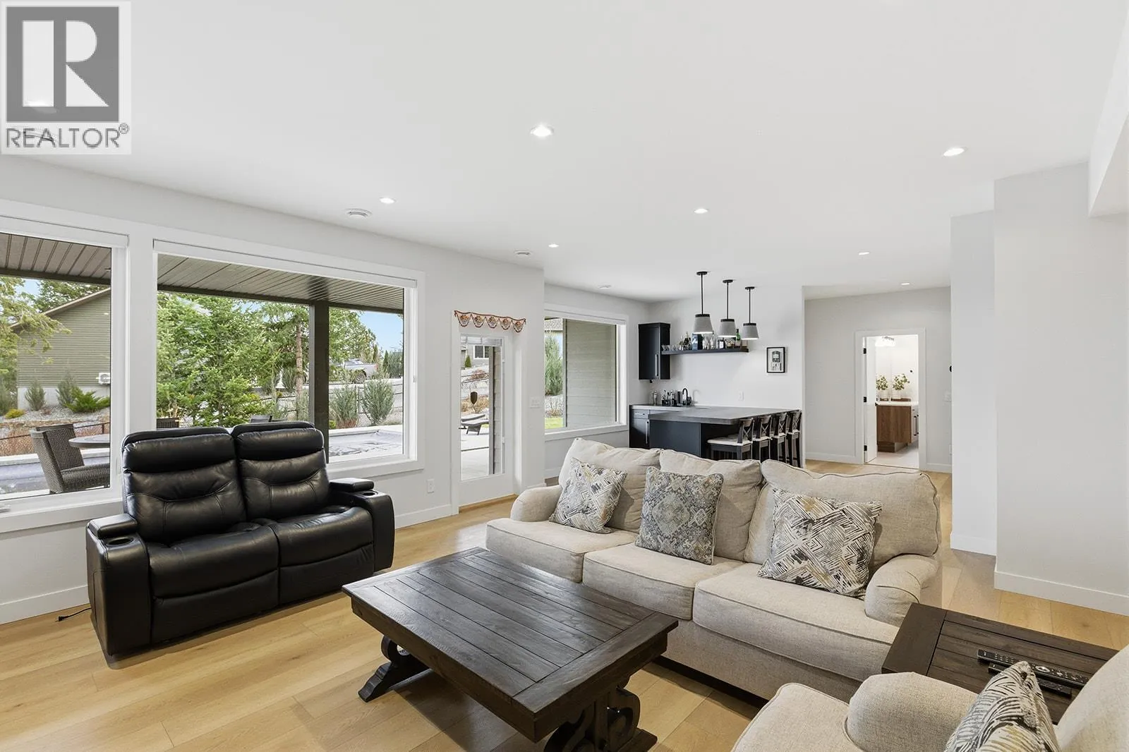 Stunning Lakestone Walkout Rancher with Triple car garage and sweeping Lake Views of Wood Lake and Kalamalka Lake. Situated on a fully landscaped pie-shaped lot, this property features a private, fenced backyard oasis complete with an inground pool and fire pit, absolutely perfect for entertaining or relaxing all summer long. Built by award-winning Preferred Lakestone builder Noba Vision Lakeside Homes,