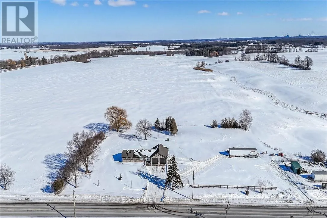 Discover this private “Country Retreat” surrounded by calming farm fields highlighted w/beautifully renovated bungalow, owned by prof. brick/stone mason, where skillful workmanship is evidenced by stunning stone/brick façade covering the original dwelling & large 2020 addition incs 28’x36′ attached garage offering scissor truss, hoist worthy, ceiling & 2 insulated 10’x10′ RU garage doors w/hi-end side openers. The sprawling “Estate” style