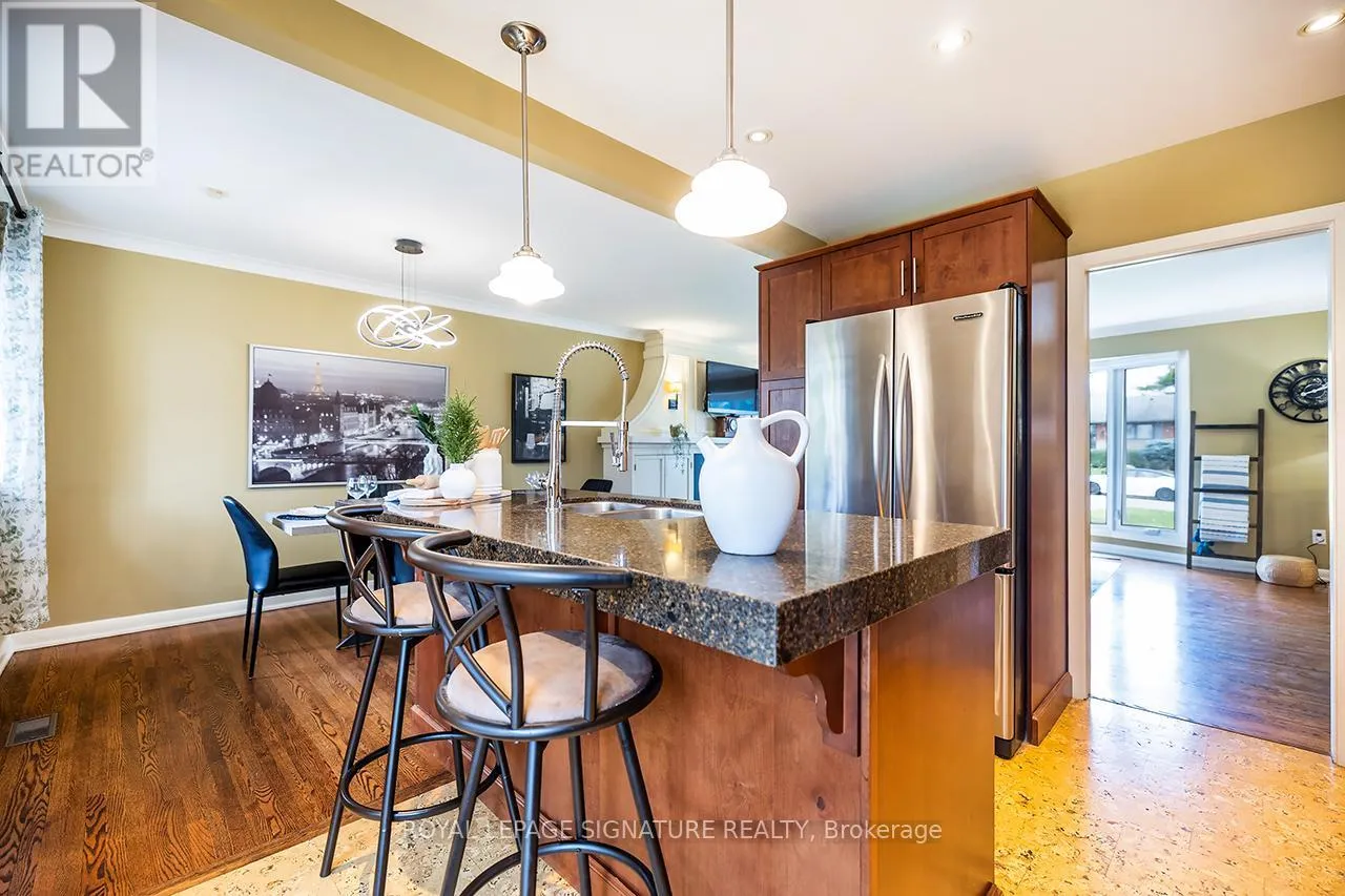 Stylish and thoughtfully upgraded 4-bedroom sidesplit set on a premium pie-shaped lot with a rare separate lower-level entrance. The bright open-concept main floor is anchored by a stunning living room featuring a beautiful gas fireplace framed by custom built-in cabinetry and a south-facing bow window that fills the space with natural light. The chef-inspired kitchen offers quartz countertops, a marble