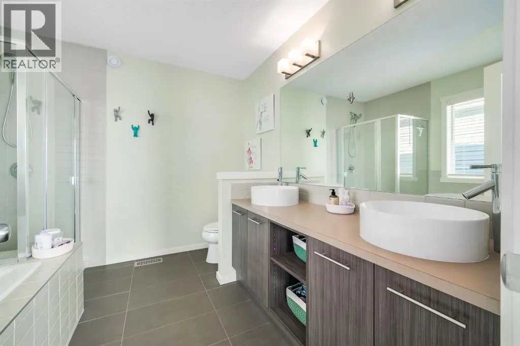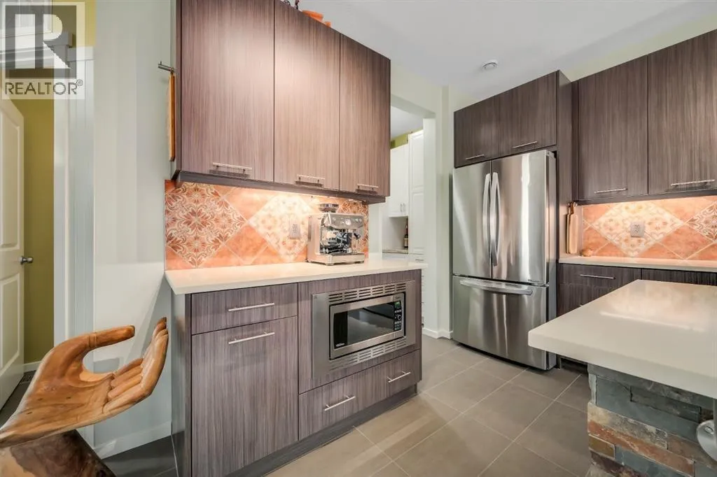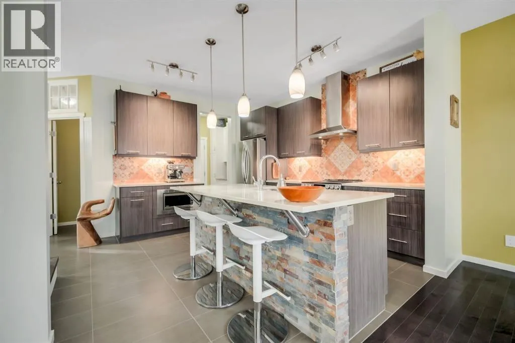 the boulevard on three sides. Walkability to the THREE nearby parks, a pond, two schools, and amenities/professional services is highly desirable. Leave the car at home. Now let’s talk curb appeal…The southeast-facing wrap-around porch w/ slip-free composite surface is made for morning coffee in the sun. The rear courtyard hosts an extensive 30’ x 20’ patio that soaks up afternoon and evening light, while offering shade trees to a host of songbirds. The yard is fully fenced with steel fencing, gated arbours, a garden shed, and no grass to mow. Passive sub-irrigation to front and rear gardens using downspouts and weeping tile is smart & efficient. Low-maintenance, high-enjoyment living at its finest. Inside, this home is anything but cookie-cutter. It’s colourful, joyful, and full of personality — thoughtfully upgraded with texture, custom lighting, custom blinds, forever floors, and built-in details that balance warmth with smart efficiency. The main floor welcomes you with tile and hardwood floors, and a spacious foyer that captures the spirit of the west, with a place for everything. The kitchen pops with Portuguese tile backsplash, quartz counters, stone-faced island, under-cabinet lighting, upgraded SS appliances, and clever pull-outs for garbage, recycling, and more, with easy access to meals on the patio. The living room features a stone-faced gas fireplace, custom live-edge floating shelves, and a retractable TV support. Upstairs, floors are engineered hardwood and tile. The primary bedroom offers mountain and boulevard views, built-in mirrored closets (no dressers), and a 4-piece ensuite with soaker tub, separate shower, twin ves sel sinks, and waterfall faucets. There are two more bright bedrooms off of a hallway alcove with custom closet built-ins. The second-floor also features a full bath, convenient laundry room, and a bonus room/office space overlooking the patio. The finished basement features a fourth bedroom (or rec rm/hobby rm), a 3-piece bath, a rec/yoga space, and your own Cupboard Under-the-Stairs storage nook with a little Harry Potter charm. The fully finished attached double garage (17’ x 21’) was the original showhome office and is polished to match — plus you have a custom paver walkway, central vac, A/C, HRV system, 92% high-efficiency furnace, 75-gallon Marathon hot water tank, and a full Eufy security camera system already installed. This home was designed to stand out — and it still does. If you’re looking for something with personality, outdoor living that actually feels usable, and a location that makes everyday life easy… 12 Sunrise View might just be your perfect match. Come experience the energy. (id:64429)