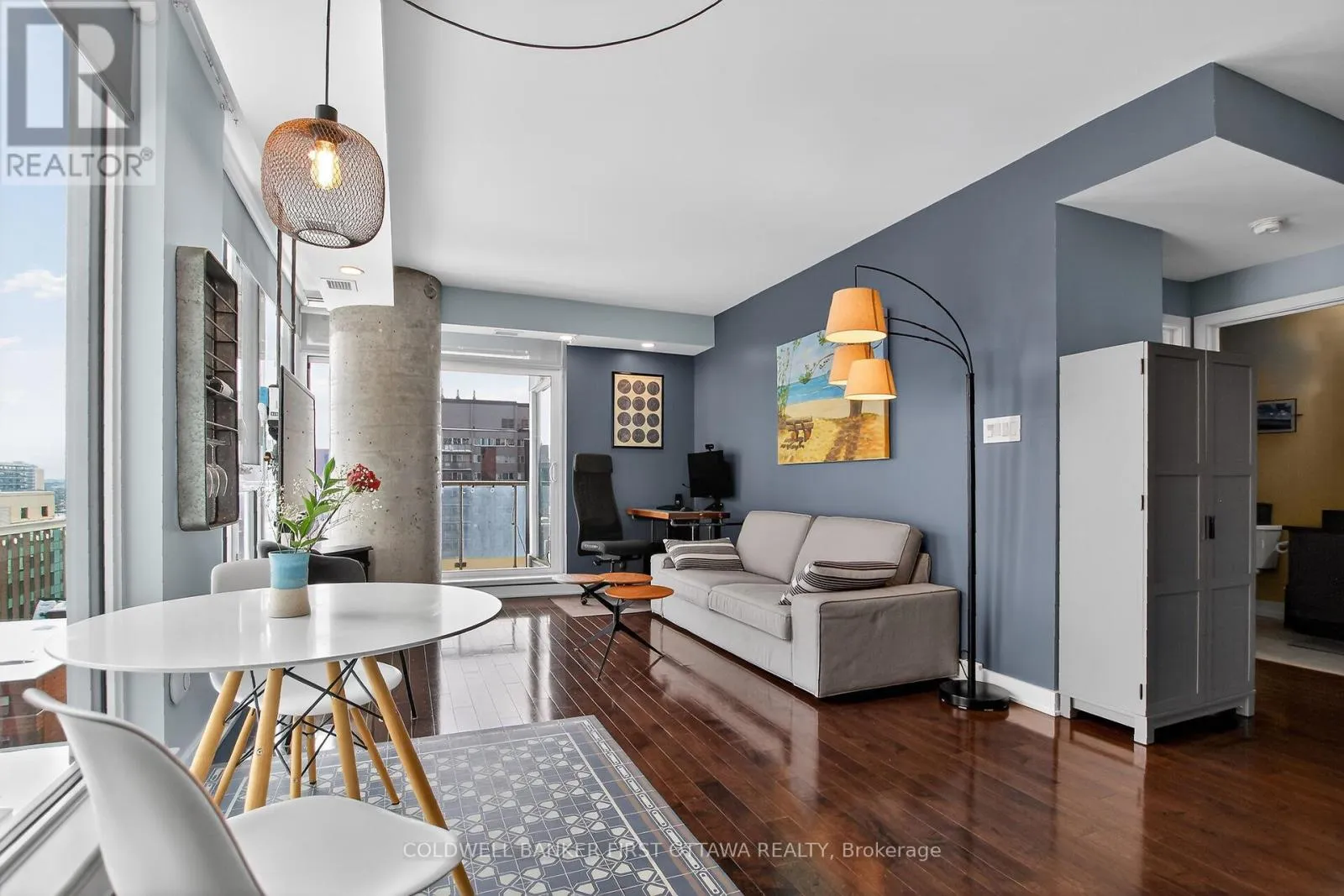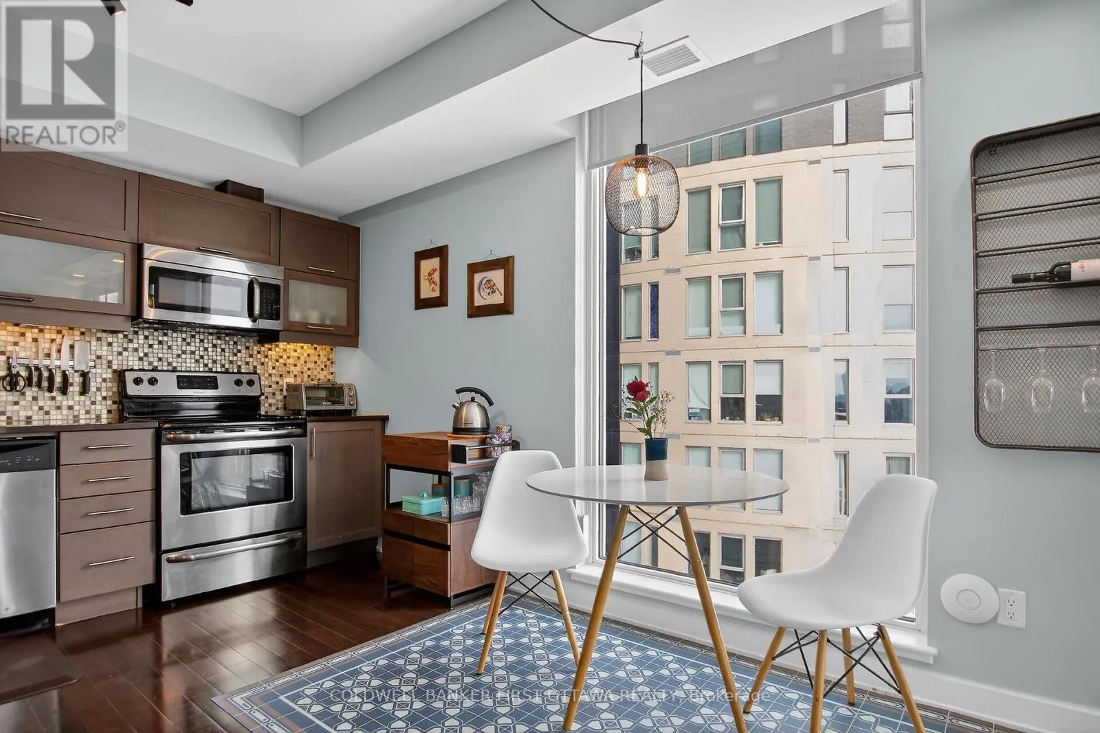 Bright (South exposure) corner 1 + den unit in the Tribeca condo building. Nicely located withing walking distance to Ottawa U, Parliament Hill, Rideau Centre with a convenient Farm Boy and coffee shop on the main level. This unit is open concept and has no carpets; all wall to wall espresso hardwood floors & Smart light switches. Quartz countertop