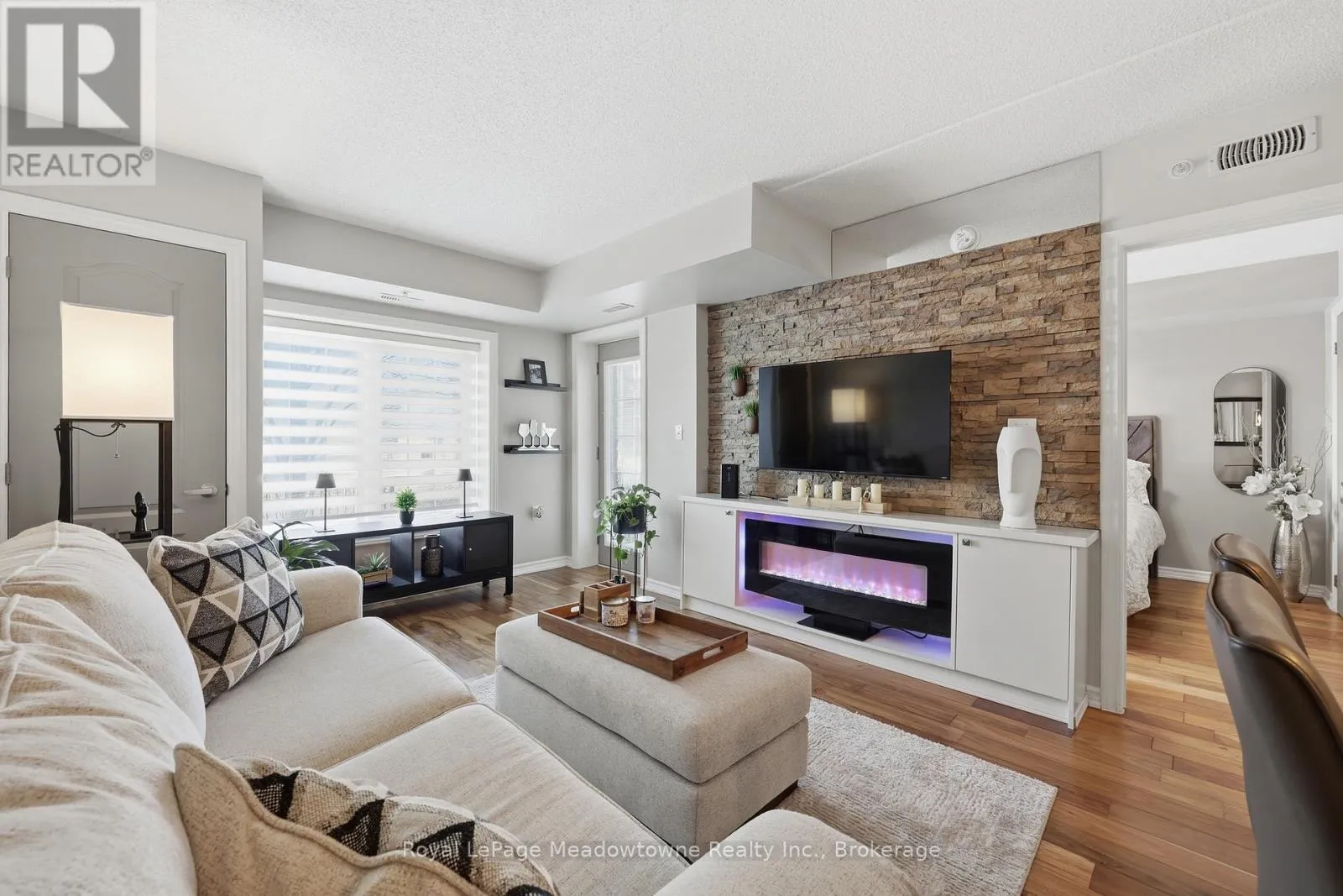 Welcome home to this bright, freshly painted 1-bedroom condo that defines move-in ready! Perfectly suited for first-time buyers or downsizers, this unit features a spacious layout rarely found in 1-bedroom suites. The open-concept floor plan includes a dedicated large dining area, perfect for hosting dinner parties, which flows into a living space anchored by a cozy fireplace. The kitchen has
