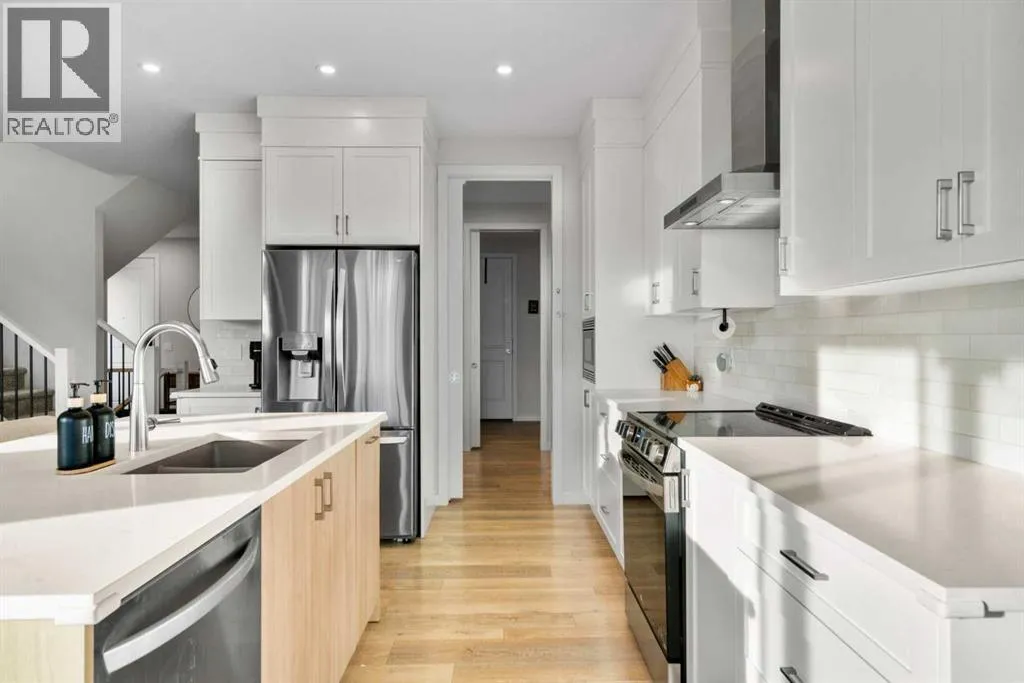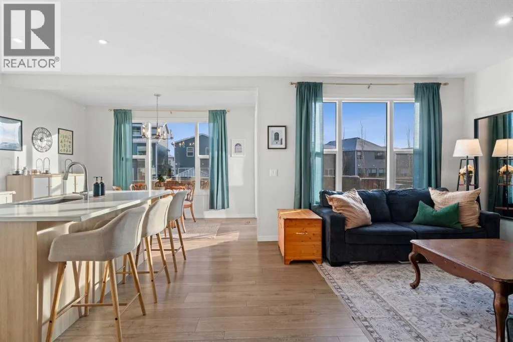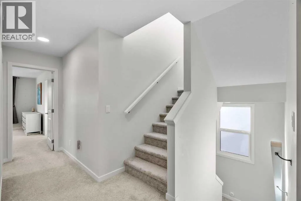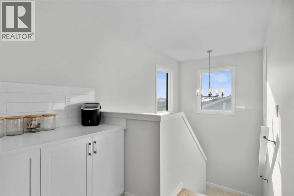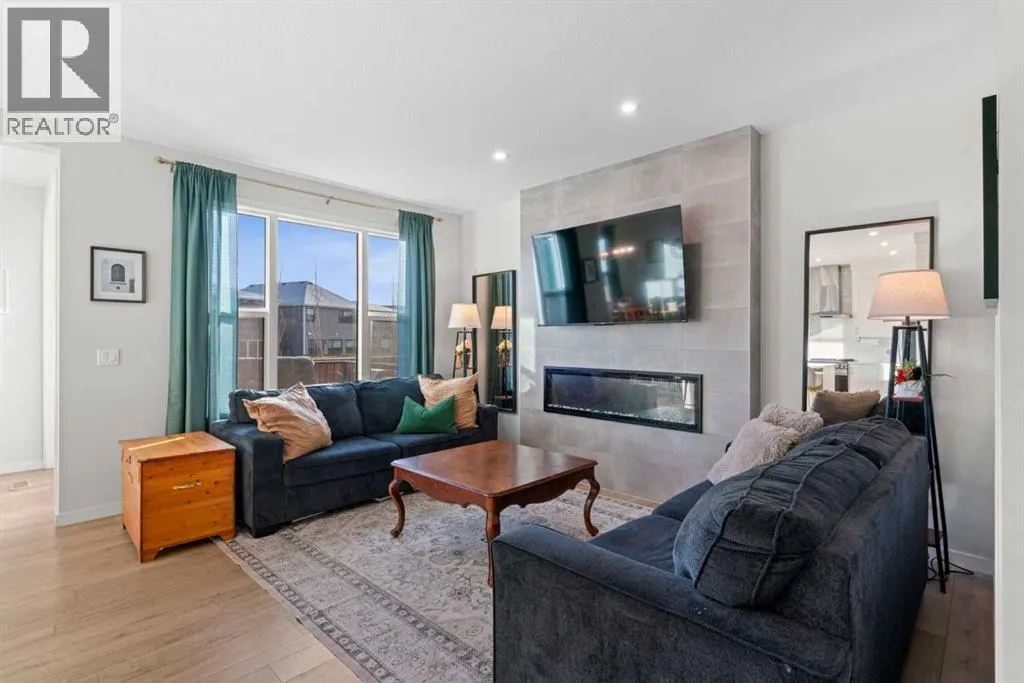 nature. Step inside and you immediately notice the elevated features like 9 FOOT CEILINGS, 8 FOOT DOORS, and oversized windows that draw natural light deep into the space. The kitchen is both striking and functional, finished with full height cabinetry, quartz countertops, pot drawers, a beautiful tile backsplash, and sleek pot lighting. At the heart of it all, the island invites gathering, whether it is weekday breakfasts or drinks on the weekend with friends. Tucked just behind, the BUTLER’S PANTRY with open shelving and a sink keeps prep and storage beautifully organized. The dining nook is bright and welcoming, flowing seamlessly into the great room where a striking ELECTRIC FIREPLACE adds warmth and ambiance. A well placed powder room and mudroom complete the main level with everyday practicality. Upstairs, the second floor is designed for real family living. A spacious BONUS ROOM creates the perfect hangout for movie nights or homework sessions. Two generous bedrooms share a full bath with quartz counters, while the primary suite feels like a true retreat. The ensuite features DOUBLE SINKS, a WALK IN SHOWER, a deep soaker tub, and a large WALK IN CLOSET that makes staying organized effortless. Laundry is conveniently located on this level with plenty of storage, a detail you will appreciate from day one. Then there is the third storey. This is where the home becomes unforgettable. A massive bonus space with a wet bar opens onto a covered southwest facing balcony, creating the ultimate lounge for long summer evenings and sunset views. With its own powder room, this level offers flexibility for entertaining, a home office, a games room, or a private escape away from the rest of the house. The unfinished basement is ready for your ideas, whether that means a home gym, additional bedroom, or recreation space. The double attached garage adds comfort and convenience year round. Outside, the pie shaped lot gives you a backyard that feels expansive and private. The large deck is made for morning coffee and summer BBQs, with room for kids to play and friends to gather. Living in Cranston means access to the Cranston Residents Association with its splash park, skating rink, tennis courts, and community events, plus endless pathways along the river and through Fish Creek Park. It is a lifestyle rooted in connection, nature, and community. Homes like this do not come along often. Three finished levels, a CUL DE SAC location, and that incredible third floor retreat make this one truly special. Come see it in person and imagine the memories waiting to be made. (id:62650)