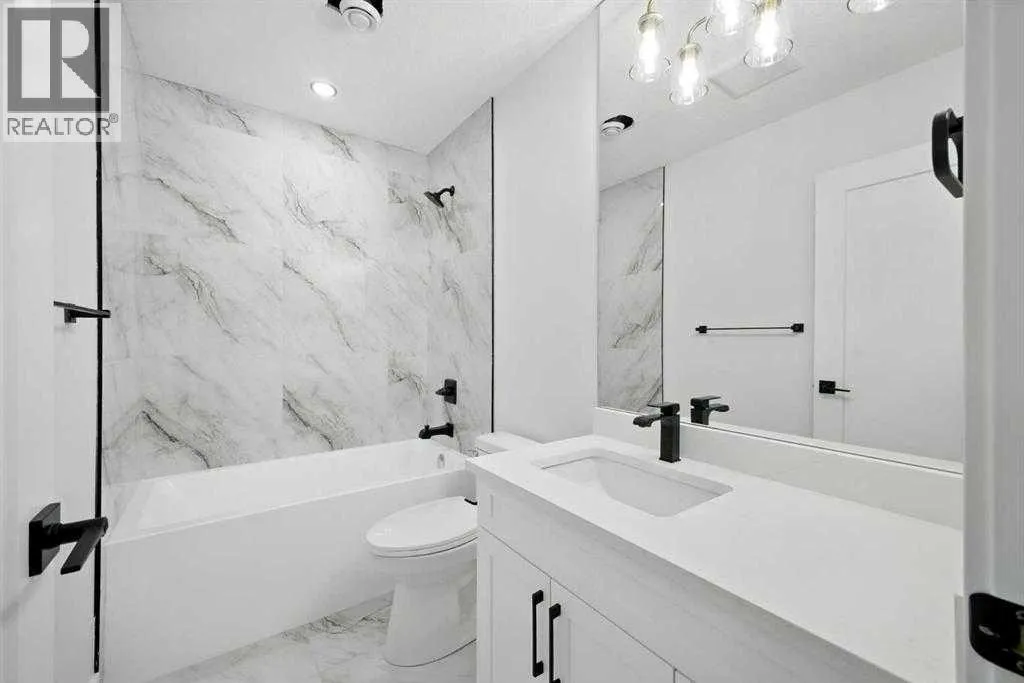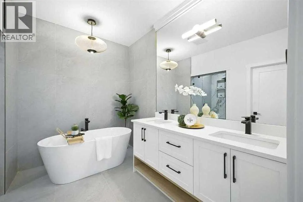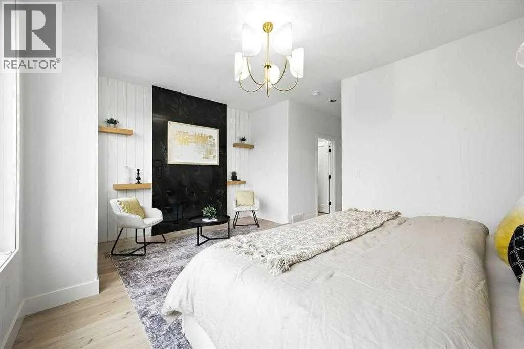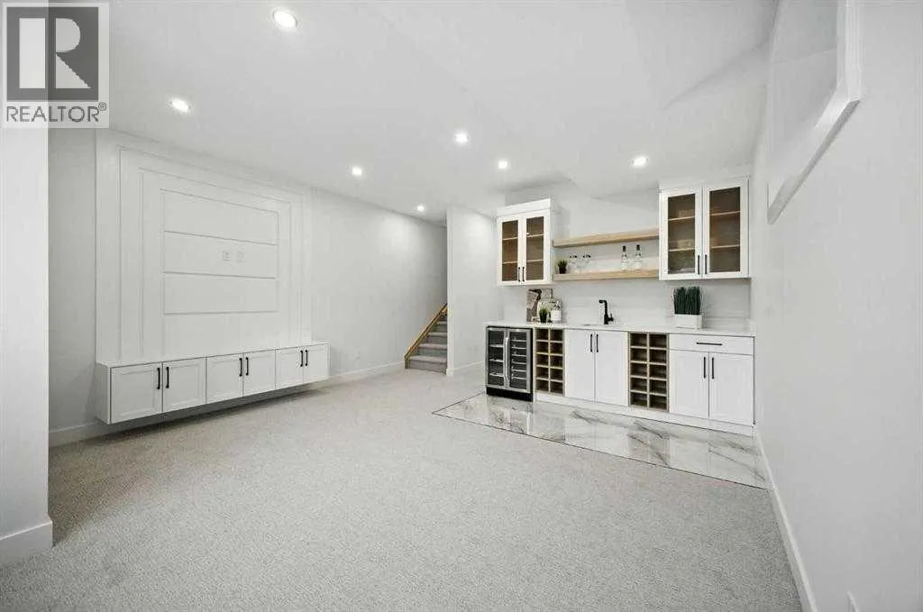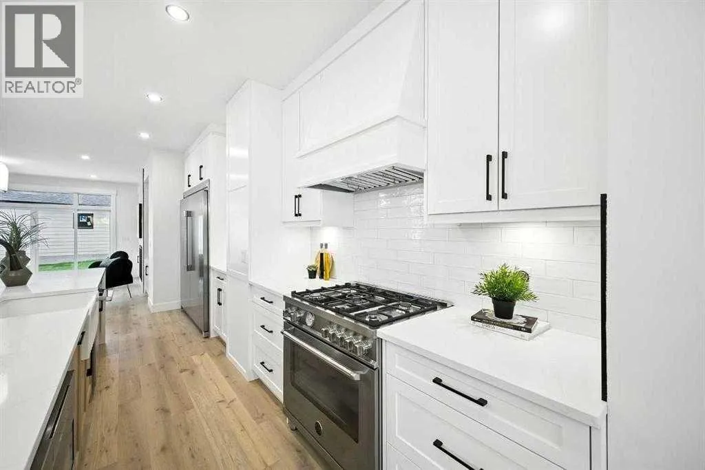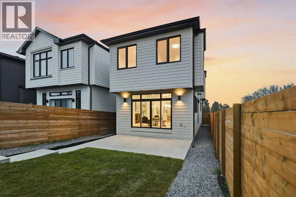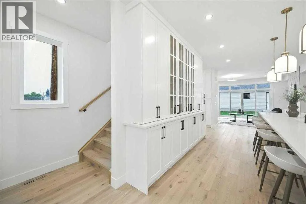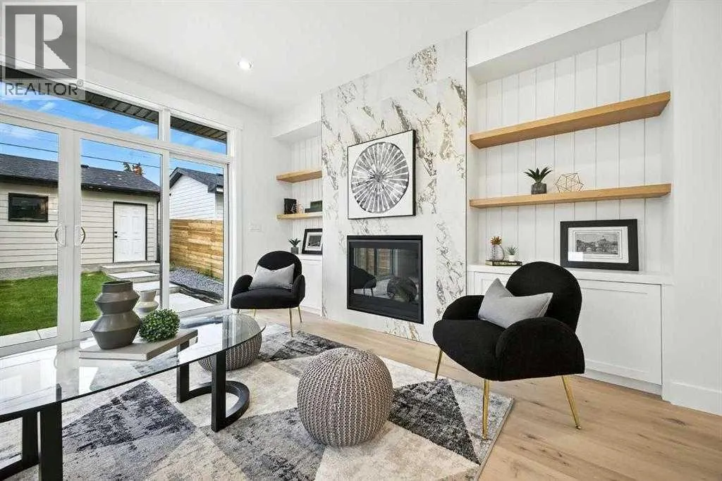 across from a school and framed by professional landscaping, the setting offers both privacy and connection, with Confederation Park, the Mount Pleasant Sportsplex, local playgrounds, and downtown just moments away. Inside, the main floor unfolds into a bright, contemporary living space designed for both relaxed living and effortless entertaining. Large windows invite natural light throughout, highlighting the rich engineered hardwood flooring and stylish gas fireplace with custom built-ins that anchor the living area. The seamless open layout creates a natural flow between the kitchen, dining, and living spaces, offering an ideal backdrop for gatherings of any size. The kitchen is thoughtfully designed with a focus on clean aesthetics and everyday function. Quartz countertops, a dramatic waterfall island, and premium integrated appliances including an oversized refrigerator and Bertazzoni Range create a polished and highly functional workspace. Custom pantry storage enhances organization while maintaining a streamlined look. Expansive sliding doors extend the living space outdoors to a private backyard featuring a concrete patio, green space, and access to the double detached garage – perfect for hosting, relaxing, or enjoying warm summer evenings. Upstairs, the primary retreat provides a calming and well-appointed escape. A sleek electric fireplace adds warmth and ambiance, while the custom walk-in closet offers generous storage. The spa-inspired ensuite elevates daily routines with heated floors, a steam shower, and a freestandi ng soaker tub designed for total relaxation. Two additional well-sized bedrooms, a full bathroom, and an upper-level laundry room complete this floor, offering practical comfort for family living. The fully finished lower level expands the home’s versatility with a spacious recreation area featuring a modern wet bar and wine fridge, ideal for entertaining or unwinding. A dedicated home gym, fourth bedroom, and full bathroom provide flexible space for guests, work, or wellness. Thoughtfully designed from top to bottom, this home presents a seamless blend of modern style, comfort, and functionality in a sought-after inner-city location, and offers a rare opportunity to experience elevated urban living in a home where design and lifestyle come together effortlessly. (id:62650)
