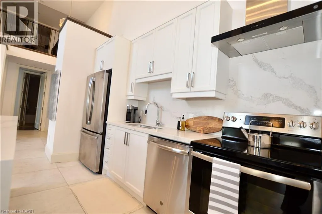 An incredible opportunity to call this iconic landmark building your home – introducing the unrivaled penthouse level. This exceptional loft-style suite showcases luxury living with thoughtfully curated, high-end finishes throughout.Featuring dramatic 18-foot ceilings, dual balconies, and an open-concept kitchen, living, and dining area framed by soaring windows, the space feels both expansive and inviting. Large-format tile flooring complements the sleek