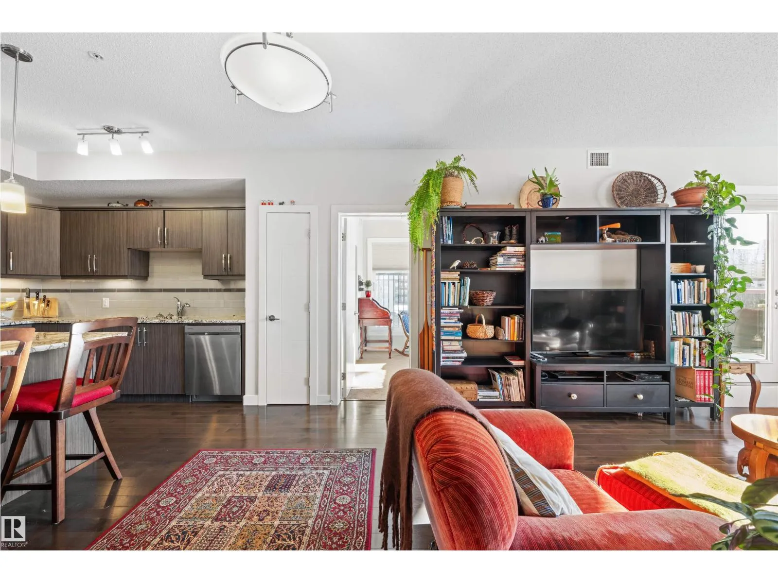 Welcome to this beautiful 942sqft top floor condo with a prime location! This modern south facing end unit, features a spacious kitchen with espresso cabinets, granite counters, island and stainless steel appliances.The bright open concept living room offer hardwood floors (extending throughout the unit) and patio door to massive balcony (83 sqft) with gas bbq–the perfect place to watch the