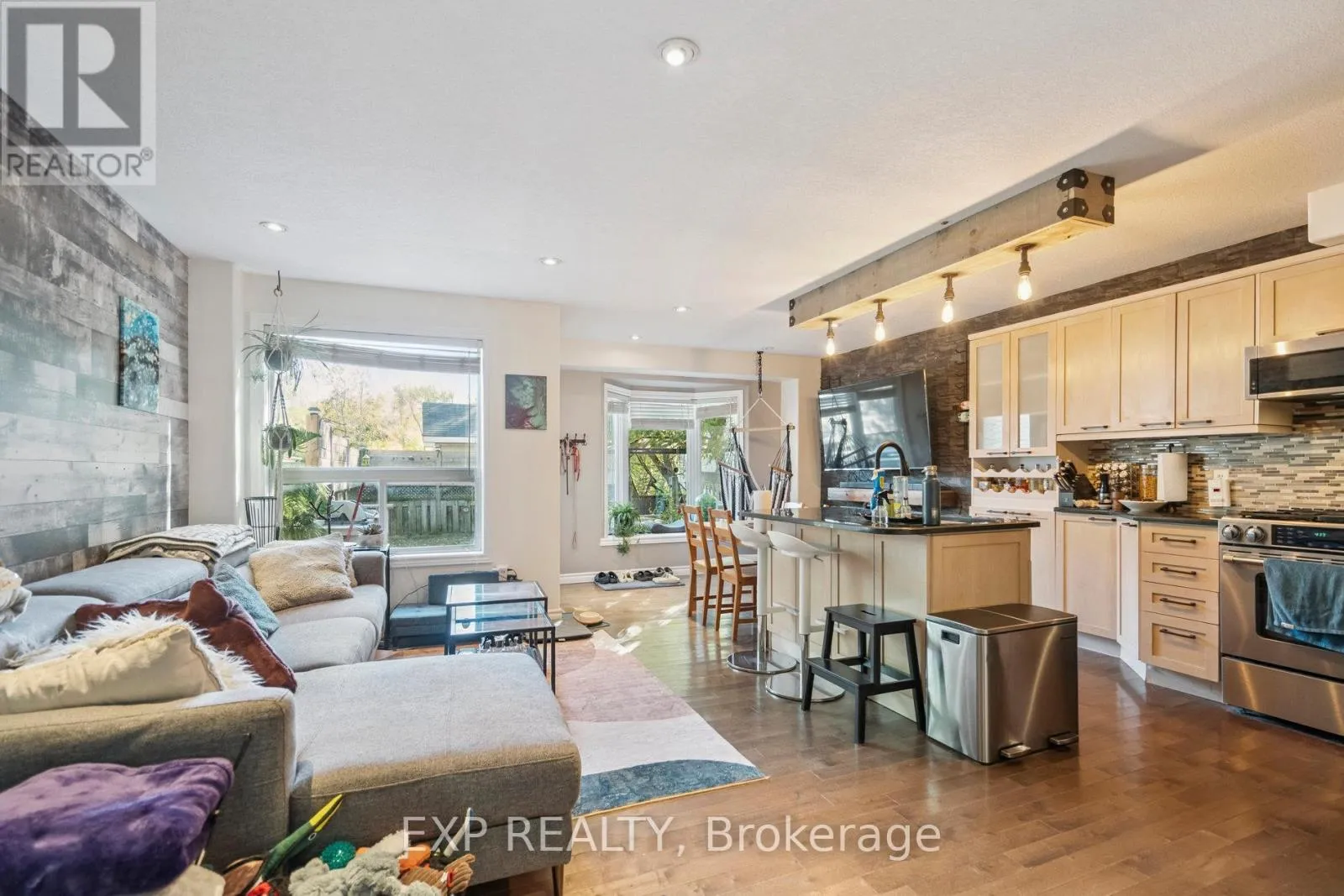 Welcome to this stylish and well-maintained freehold end unit townhouse in the heart of Winona. Offering over 1,350 sq. ft. of living space, this home features a bright and open layout with 3 bedrooms and 2.5 bathrooms. The main floor includes a spacious kitchen and living area with walkout access to the backyard, while the partially finished basement provides additional