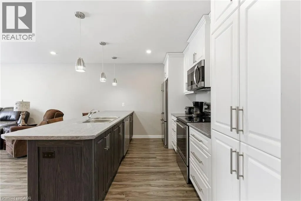 Wrapped in an attractive stone-front exterior and finished with black windows, soffits, and fascia, this home has a clean, contemporary look that’s designed to age beautifully. A paved driveway and low-maintenance exterior set the tone, polished, practical, and ready for easy living. This home has been meticulously maintained and lovingly cared for since it was built in 2018. The open-concept