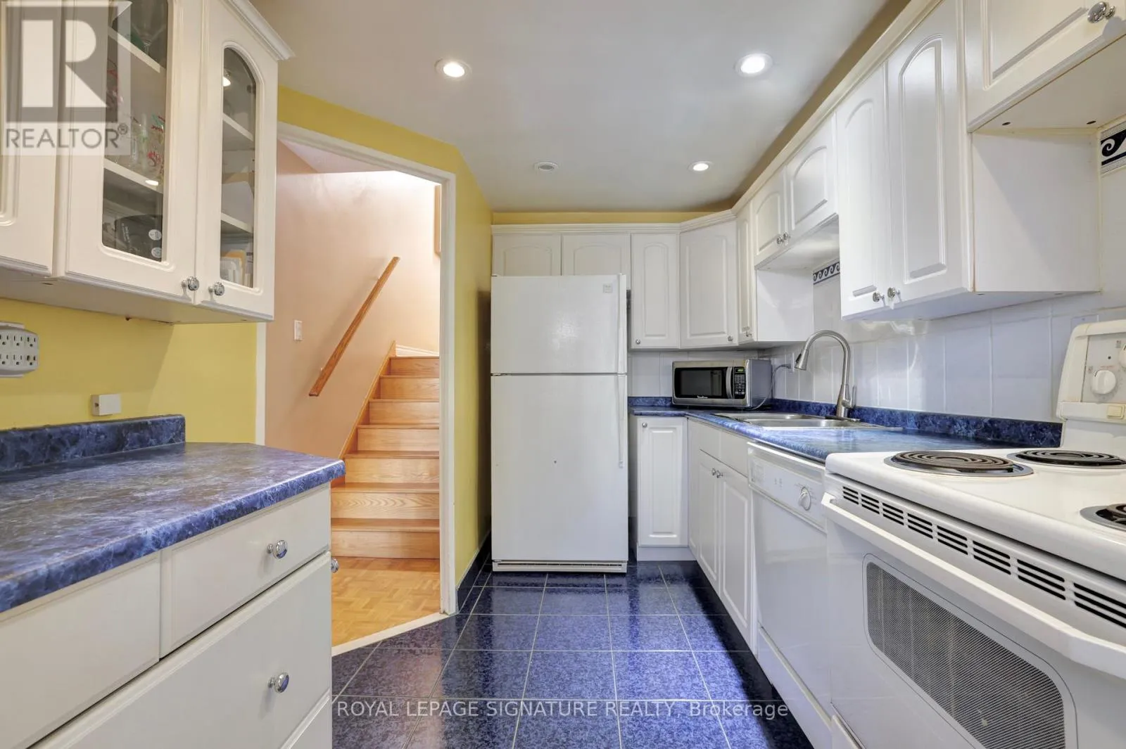 Not your Typical Condo. Beautiful large 2 Bedroom 1 Washroom Condo with separate Laundry Room Ensuite and Stairs! 1155 Sq Ft. Living Room Dining Room and Kitchen on Main Level and 2 bedrooms on Upper Level. Large Balcony with unobstructed View. The Tiffany Place Tower Amenities includes: Pool, Gym, Party Room, Tennis Court, Pool Table, Sauna, Basketball Court and 24