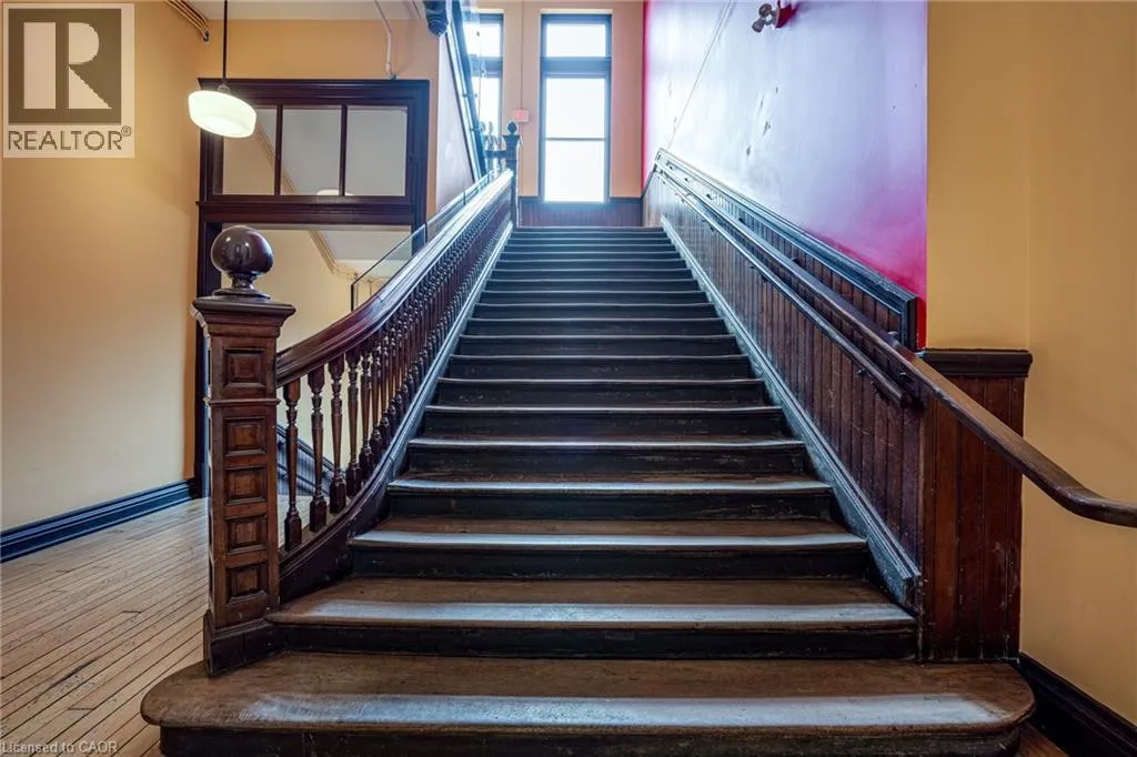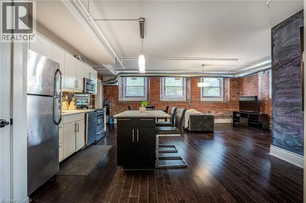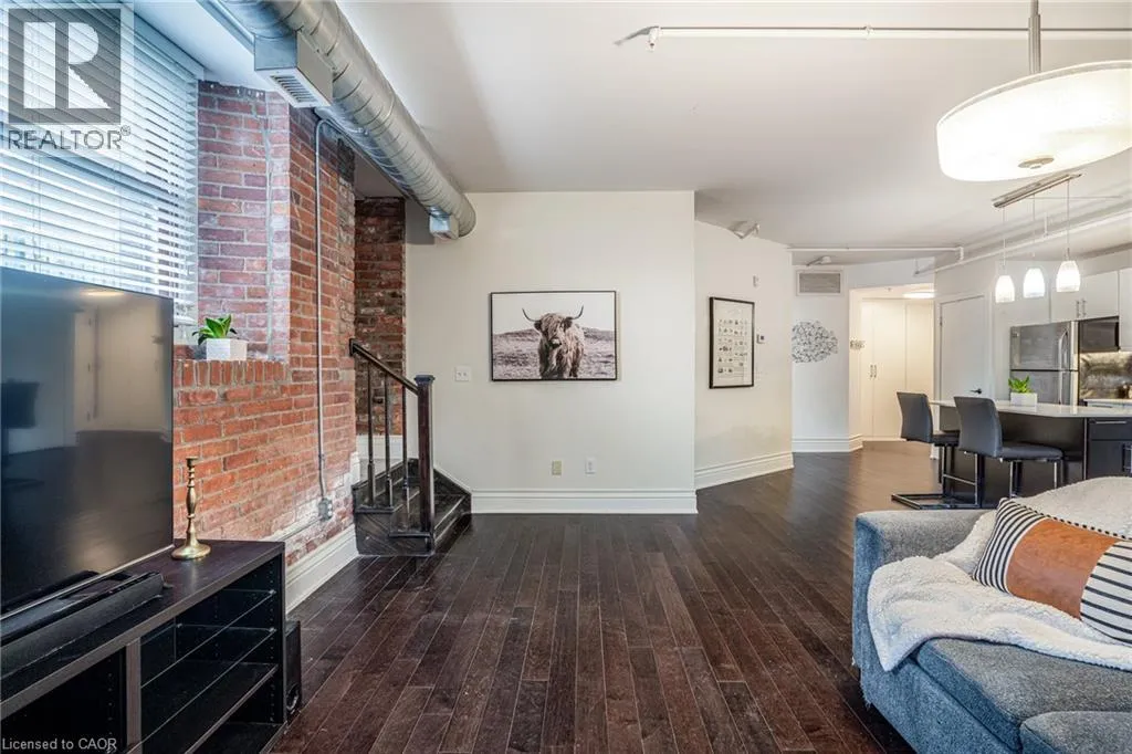 Discover a truly distinctive opportunity at the historic Stinson Lofts, where old-world character and modern comfort converge. This rare main-floor corner unit offers exceptional value for its generous square footage, highlighted by a remarkable 28’ x 12’ private patio with sweeping views of the community playground and the lush Hamilton escarpment. Inside, soaring ceilings, exposed brick walls, and rich hardwood