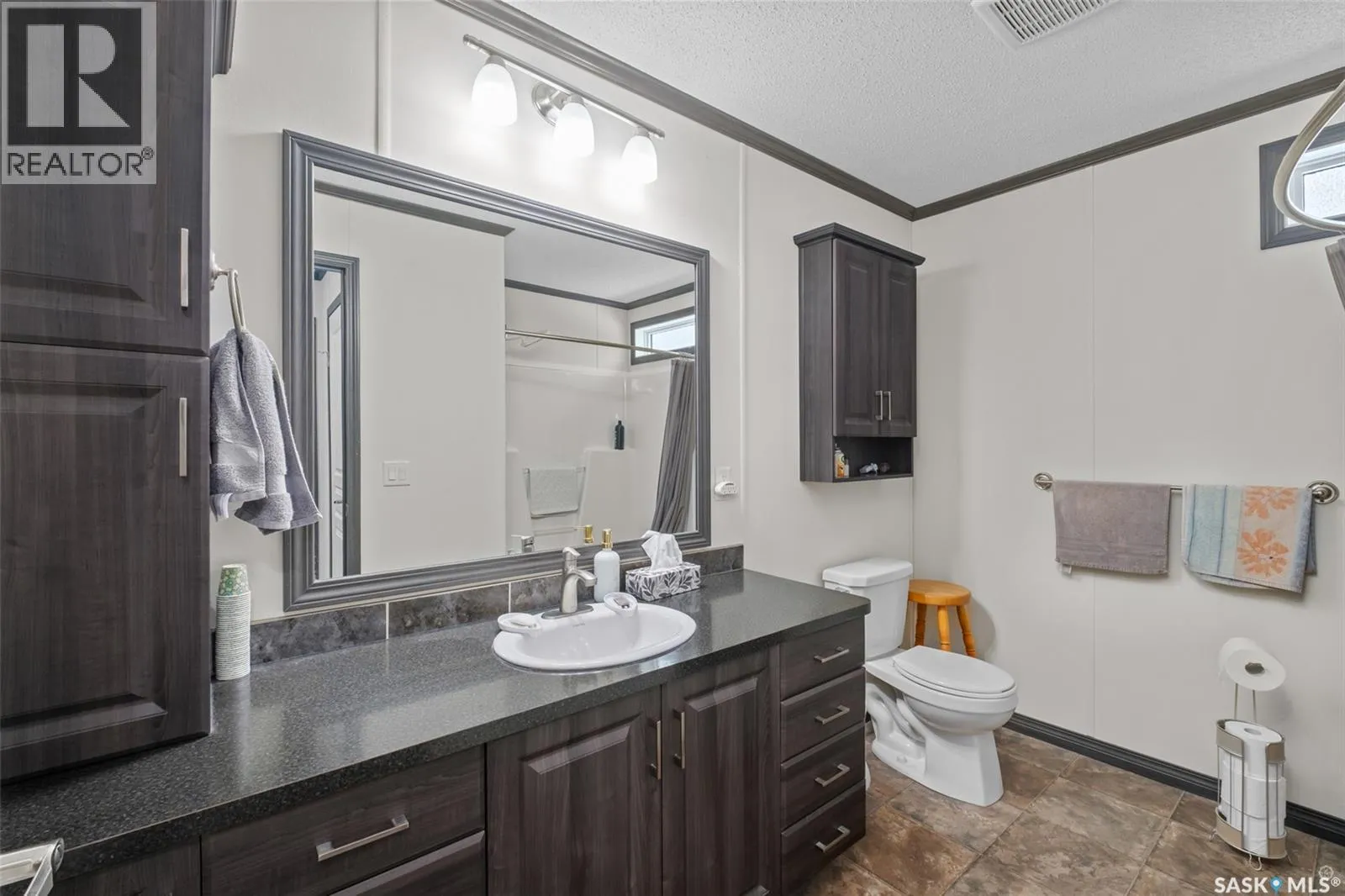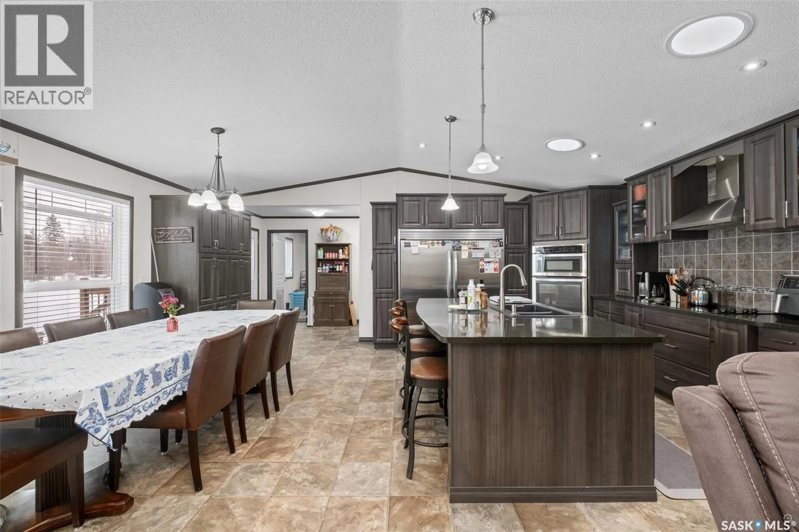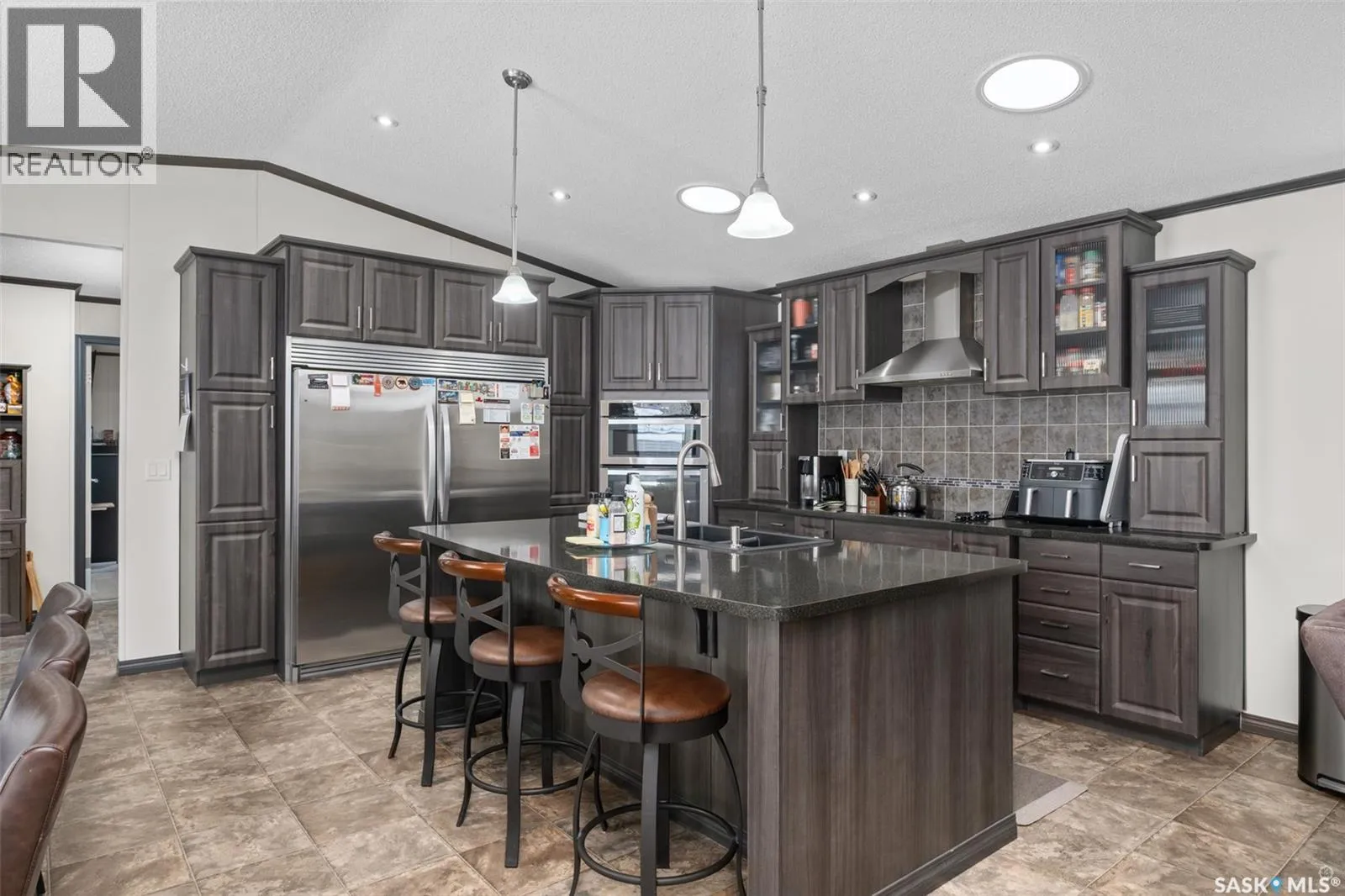 Exceptional 2016 built 3 bedroom and 2 bathroom premier show model manufactured home offering spacious design, quality finishes and small town living just minutes from the city. The open concept main living area is bright and beautifully laid out with vaulted ceilings, an abundance of windows and stylish pot lighting that enhances the modern feel throughout. The living room features