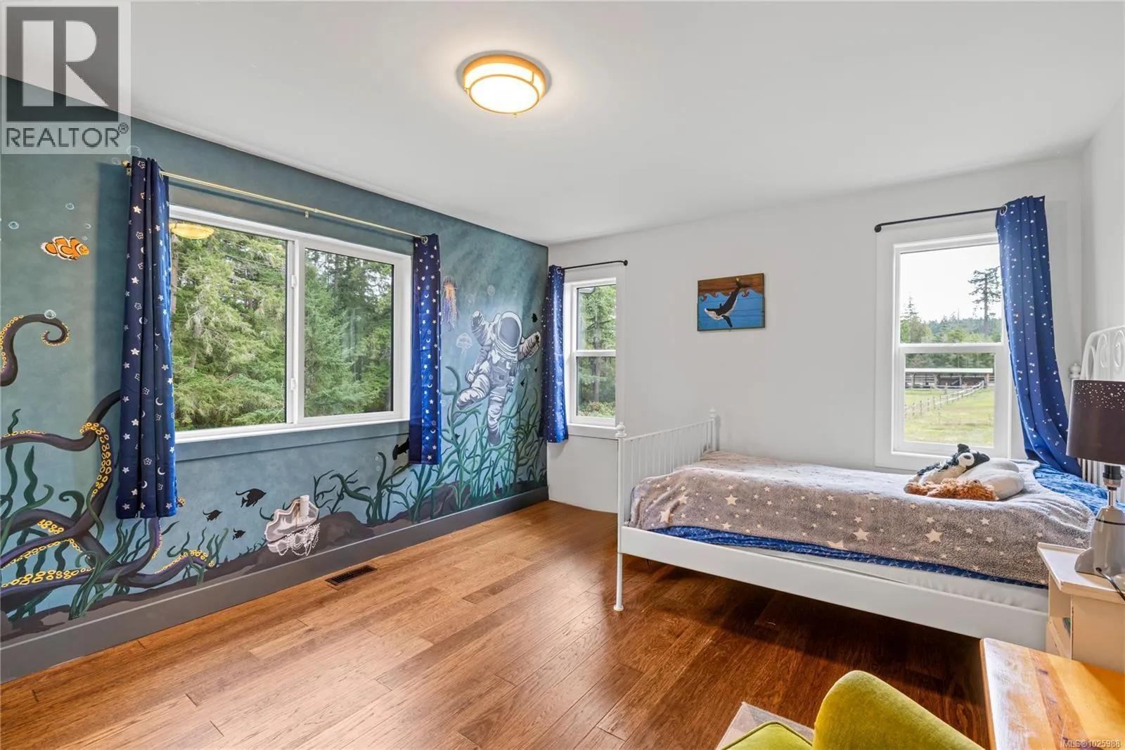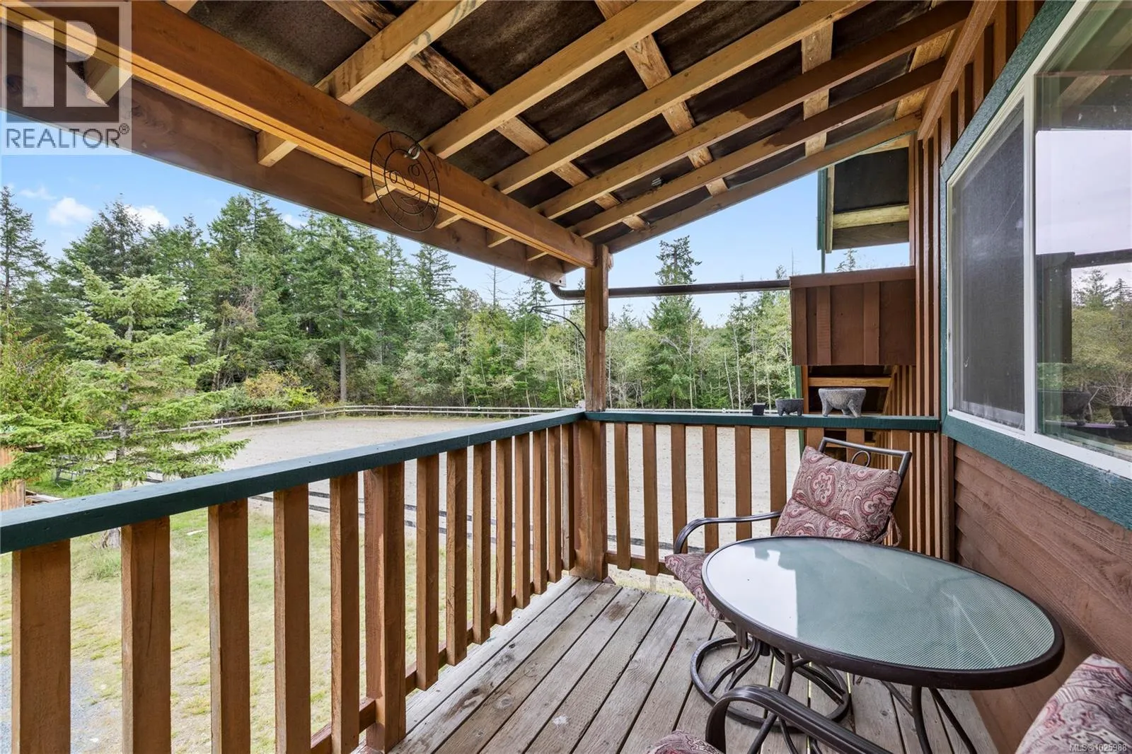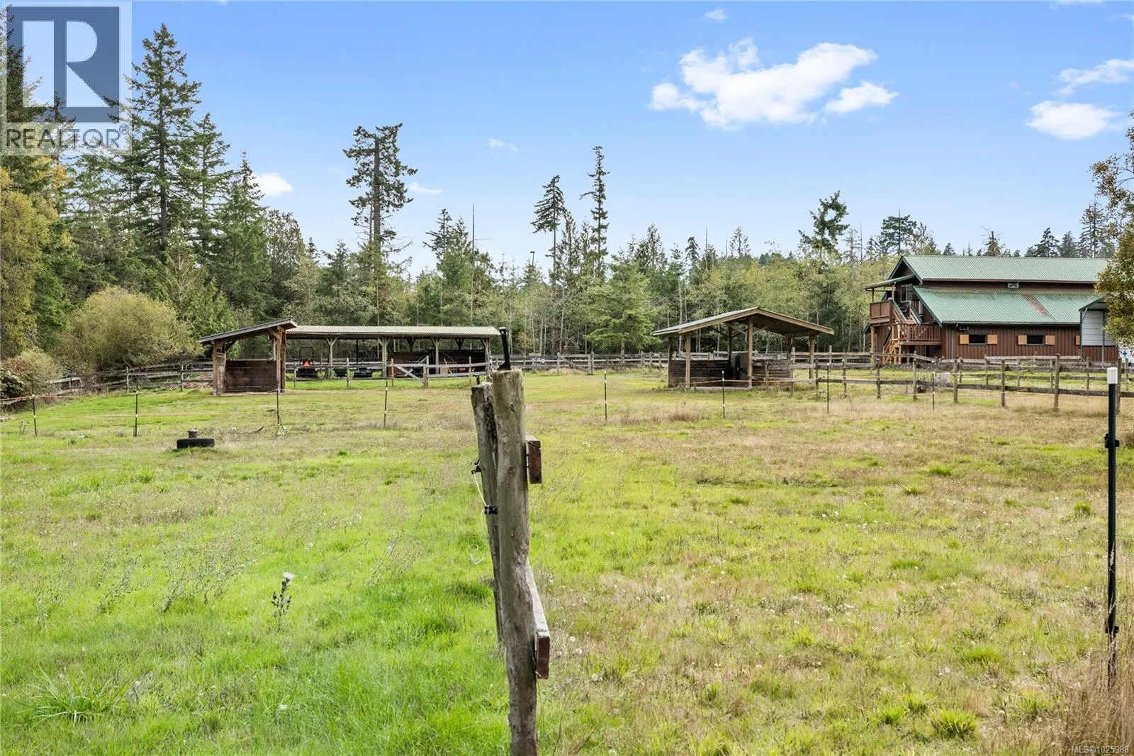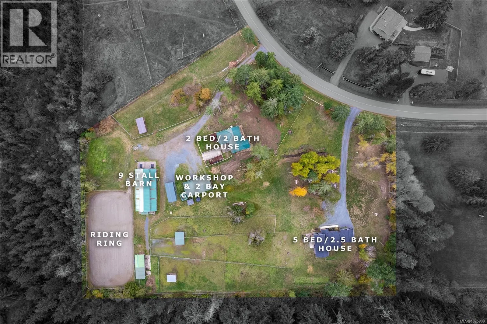 5-acre equestrian facility, with 2 homes, in the highly desirable Rocking Horse Loop neighbourhood in Nanoose Bay, ready for your equestrian dreams. Professionally engineered, well-ventilated barn with nine 12 x 12 rubber-matted stalls, heated wash bay with hot and cold water, heated office/tack room, and classroom/fitness room with kitchenette and full bathroom, plus a large, dry hay loft. 90 ft