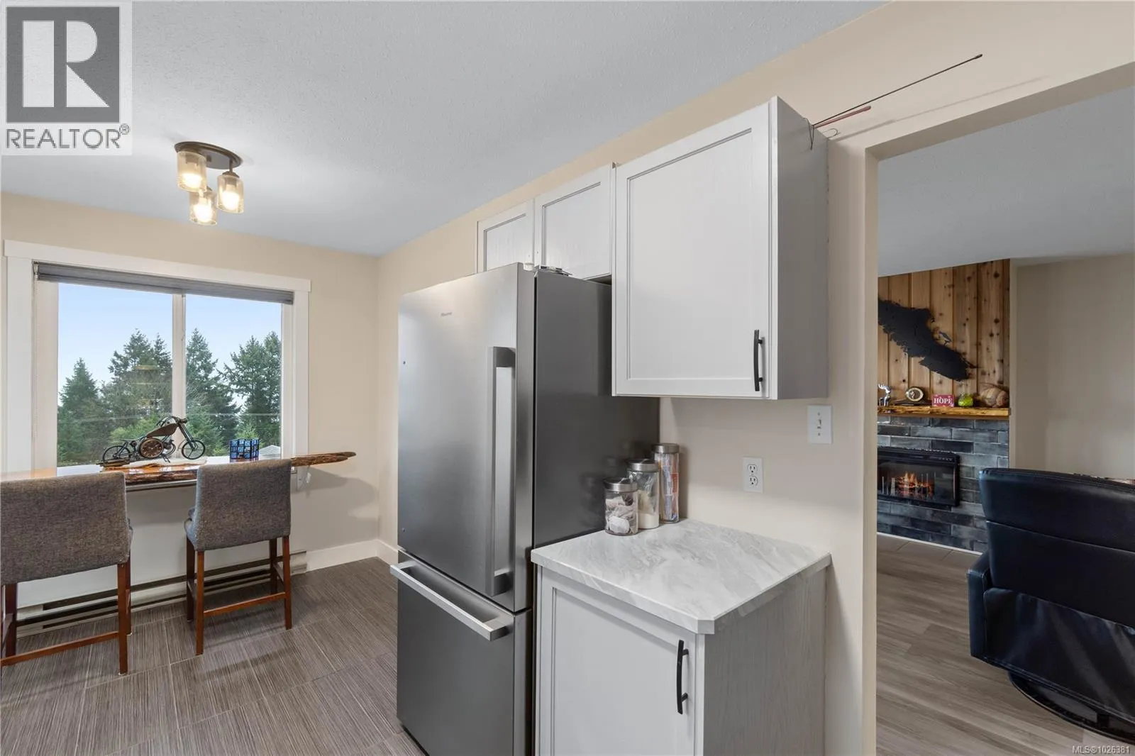 Updated 2 bed, 2 bath main-level town home with views. This stair free residence has been tastefully renovated with contemporary colours, modern finishes, and thoughtful design throughout.The bright and spacious main living area showcases lovely ocean views, while the large windows fill the home with natural light, enhancing the open-concept layout. The inviting living room features a stylish electric fireplace,