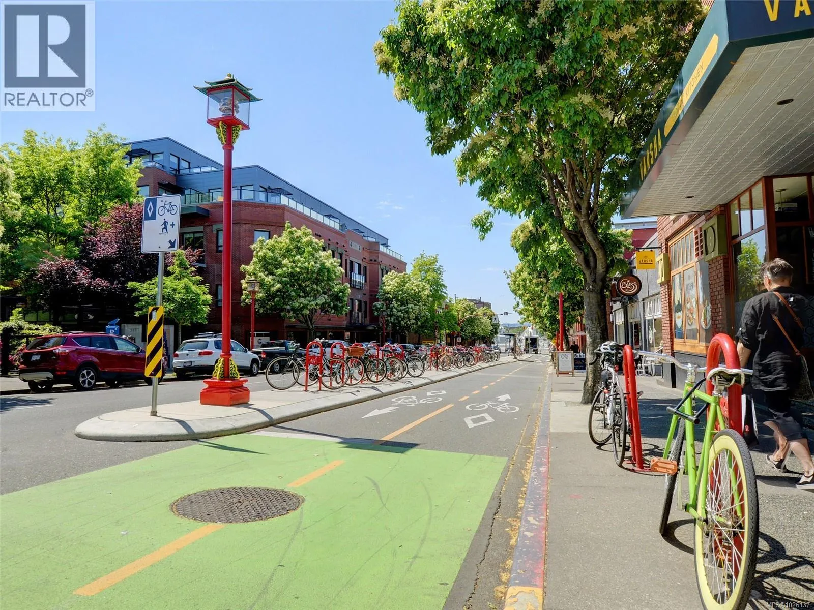 Top floor unit with vaulted ceilings for maximum natural light and a spacious feeling. Large covered balcony has a view towards the Gorge Waterway. Full sized kitchen, and the dining and living room are inline for flexible furniture placement. Cozy electric fireplace to take the chill off the winter nights. spacious bedroom will accommodate traditional bedroom