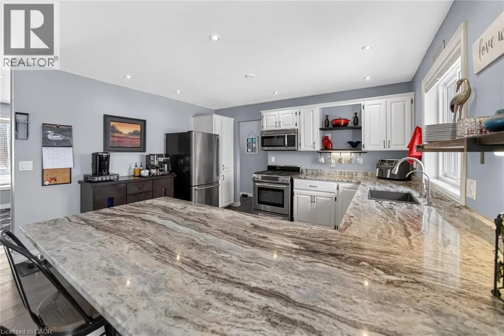 Immaculate raised brick bungalow in the heart of Wainfleet, just a short walk to schools, library, playgrounds, sports fields and the arena. Set on just over 1 acre with no rear neighbours, this beautifully maintained home offers privacy, open views and incredible sunsets. The inviting main floor features an open concept layout with a bright kitchen and dining area, spacious