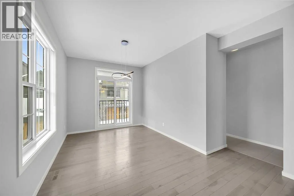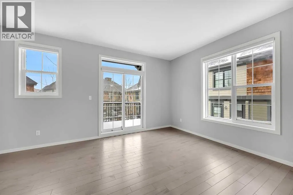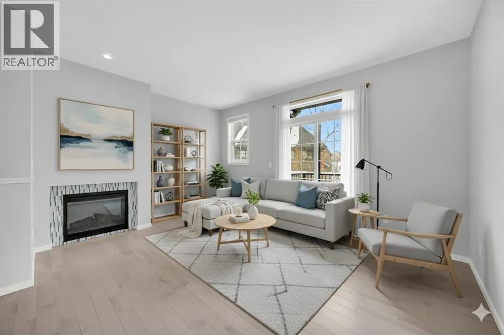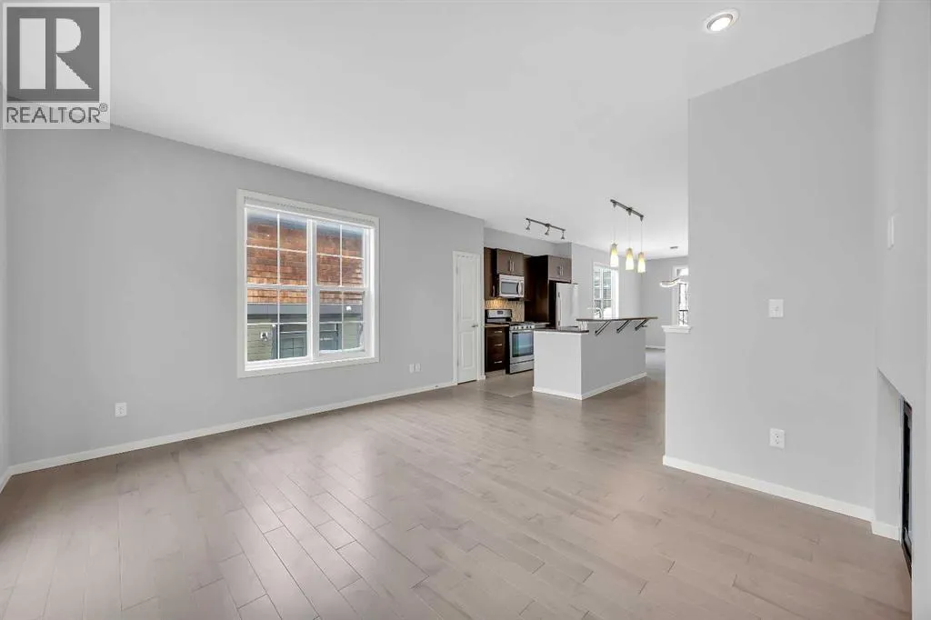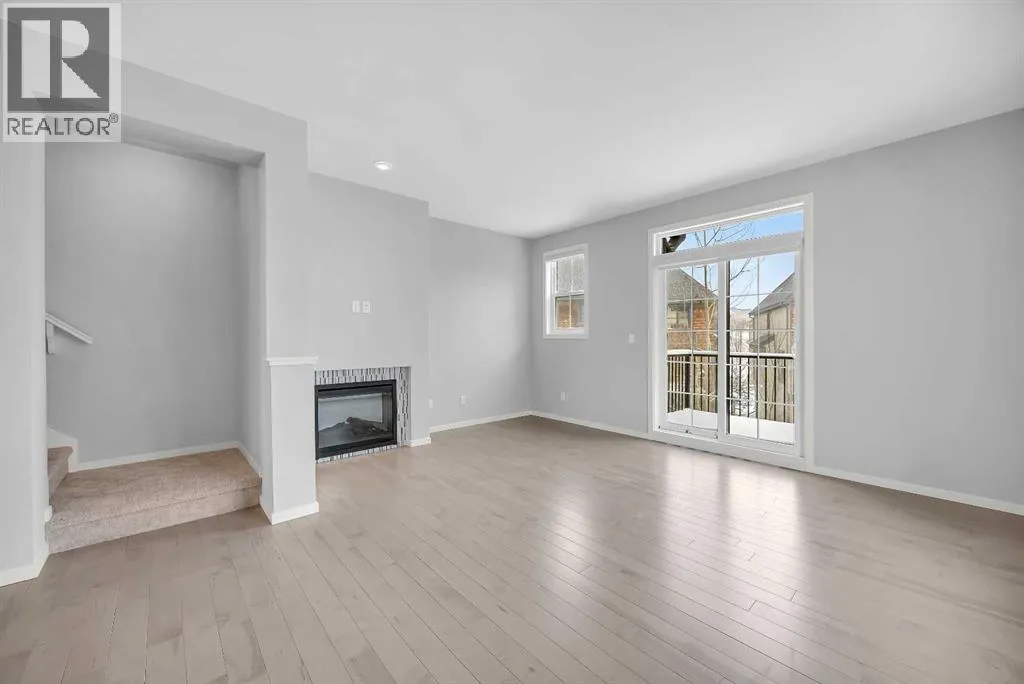 day, creating a bright and airy atmosphere rarely found in comparable units.Featuring 3 bedrooms, 2 full bathrooms, and 1 half bath, this thoughtfully designed residence delivers the perfect blend of upscale design and functional family living. From the moment you arrive, the curb appeal sets the tone. Inside, expansive windows highlight the brand new main level entire hardwood flooring and plush new carpet throughout, elevating the warmth and freshness of every space.The open-concept main floor seamlessly connects the kitchen, dining, and living areas — ideal for everyday family life and effortless entertaining. The chef-inspired kitchen offers quality cabinetry, generous counter space, and a central island that anchors the home — perfect for morning coffee, homework sessions, or hosting friends.Upstairs, spacious bedrooms provide comfort and flexibility, while the primary retreat offers a serene escape complete with a well-appointed ensuite and walk-in closet.One of the standout features is the extra wide heated tandem garage (17’7” x 36’1”) with additional storage areas, setting this unit apart from others in the complex. Whether you need space for two vehicles, mountain gear, bikes, or seasonal storage, the extra depth and versatility add significant value.Situated within The Enclave, the community offers a peaceful, mountain-inspired atmosphere reminiscent of Canmore or Banff, with beautifully maintained walking paths and green space throughout. With quick access to Stoney Trail, weekend escapes to the Rockies are effortless.Families will appreciate proximity to leading schools, walking distance to Webber Academy and Calgary Academy, the future Catholic High School, Guardian Angel and Roberta Bondar schools. Easy access to the boutiques and dining at Aspen Landing Shopping Centre. Downtown access is equally seamless, offering the perfect balance of retreat and connectivity.Specifics for this unit include all the upgrades offered from the original builder with finished ceilings, electric fireplace, stainless steel appliances & gas stove, quartz counters with under cupboards lighting, primary ensuite 10mm walk-in shower, gas bbq line.Further add-ons include: air conditioning, upgraded closets, bedroom black out window coverings, and ring door bell.This home is like new, move in ready with all new flooring, new paint and all home maintenance just completed. (id:62650)