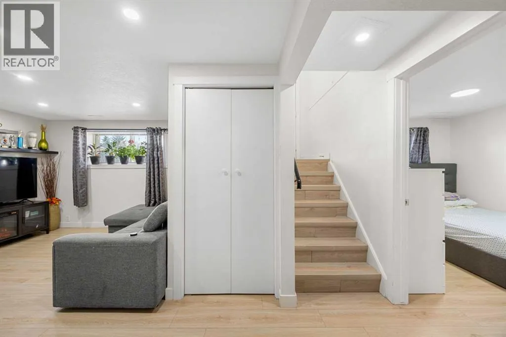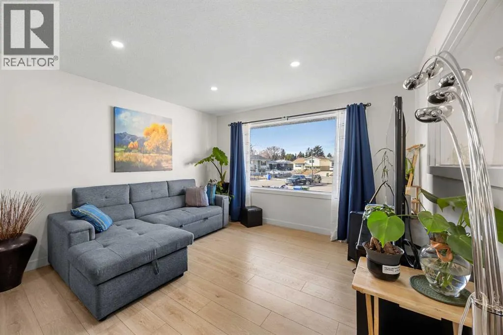 Welcome to this fully renovated bi level offering 5 bedrooms and 3 full bathrooms on a 7,104 sq ft pie shaped lot in an established community just minutes to downtown, LRT access, schools, shopping and parks. Tucked into a quiet cul de sac, this home delivers both convenience and functional living space.The main level features a bright open concept layout