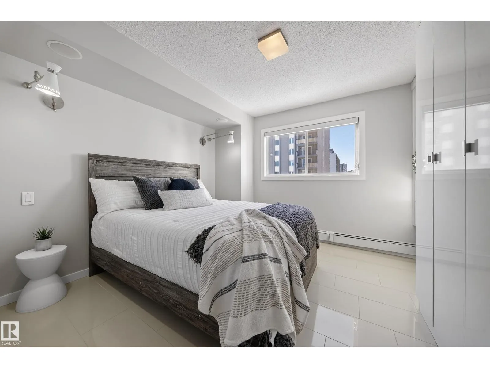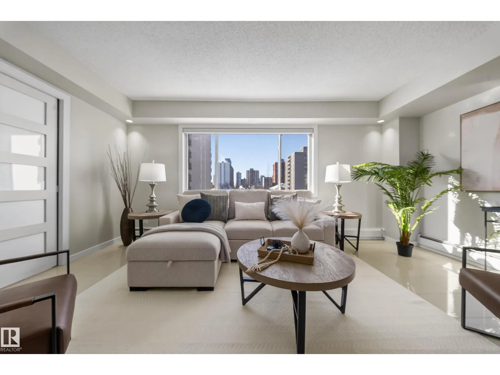 Welcome to this beautifully maintained and freshly painted 5th-floor downtown 2 bedroom, 1 bathroom condo offering modern style and exceptional convenience. The bright and spacious living room features one large picture window that fills the space with natural light and creates an inviting atmosphere, with ample room for comfortable seating and dining. Durable tile flooring runs throughout with no carpet