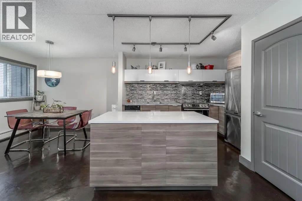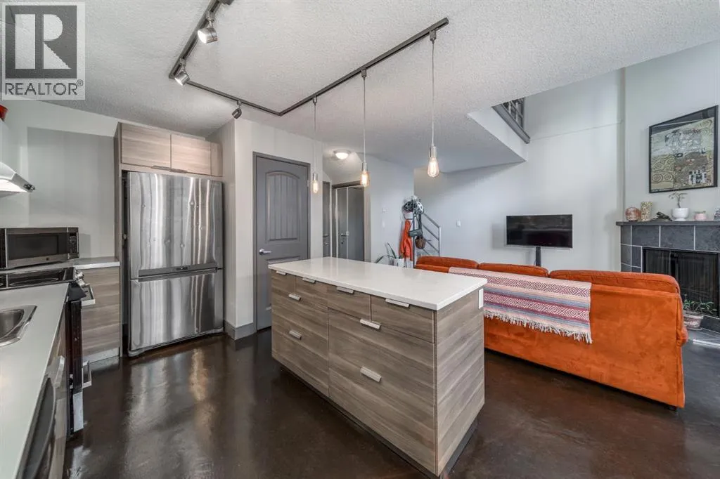 Welcome to this beautifully updated one-bedroom + loft condo, tucked away on a quiet street just steps to the Bow River Pathway and an easy walk to work, shopping, cafés, and recreation. Located in a boutique 20-unit building, this home offers privacy, character, and a prime inner-city location. The main level features an open-to-above design with soaring living room windows,