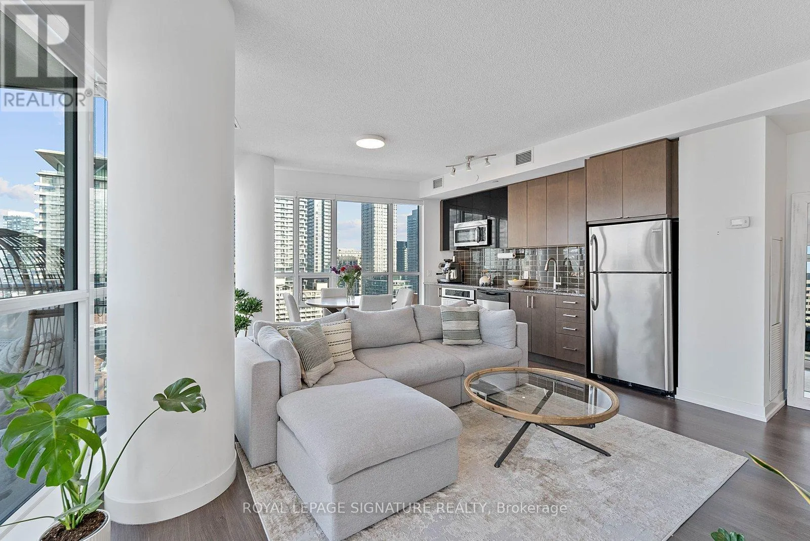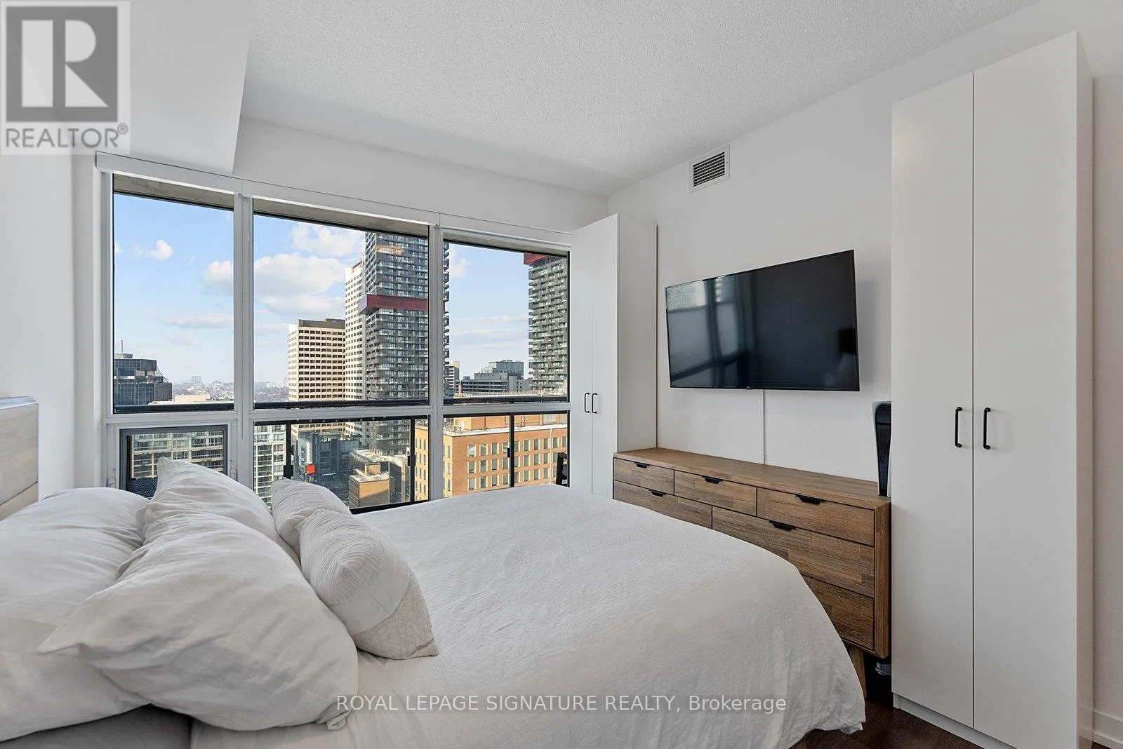 Welcome to the Madison, a standout residence in the heart of Midtown. This bright light-filled corner suite with unobstructed views, features an expansive 26 foot long balcony. Floor-to-ceiling windows flood the open-concept living, dining and kitchen areas with natural light. The thoughtfully designed layout provides a private separate bedroom with semi-ensuite washroom. Meticulously maintained and move-in ready, this suite