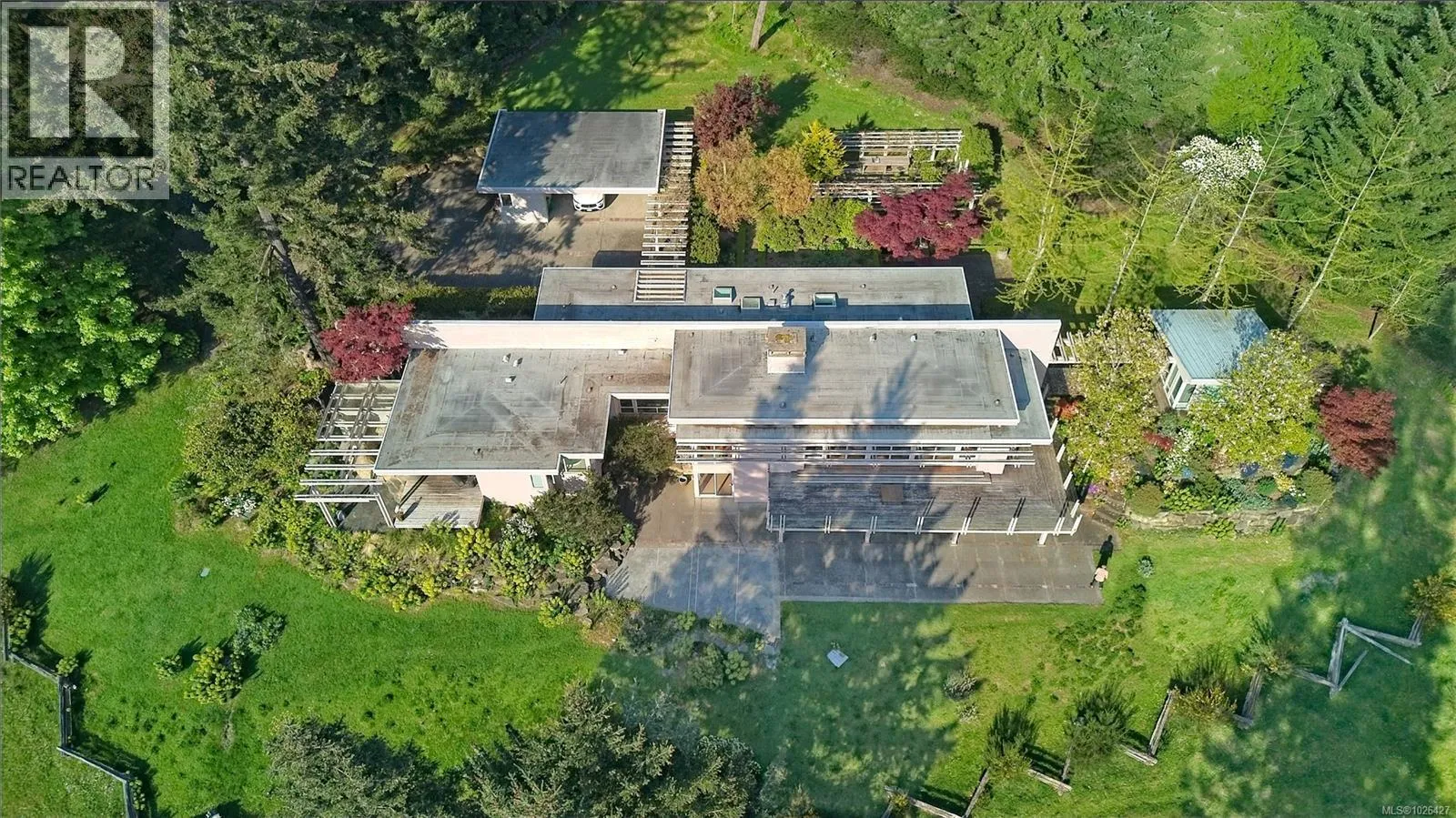 The south-facing ”Ridge” House is an architectural icon on Salt Spring Island. With an expansive valley view, and overlooks two natural ponds connected by a seasonal creek with the mountains of Vancouver Island serving as backdrop. nestled in an array of gardens with water features, the design of the Ridge House was inspired by Frank Lloyd Wright. The extensive use