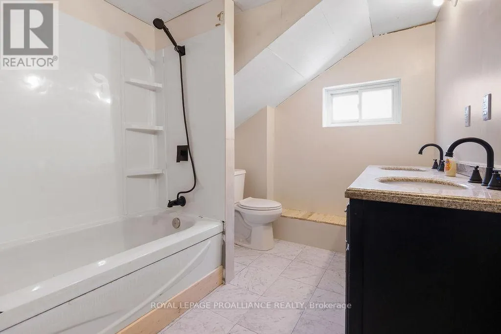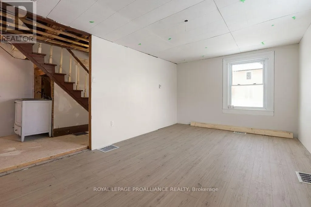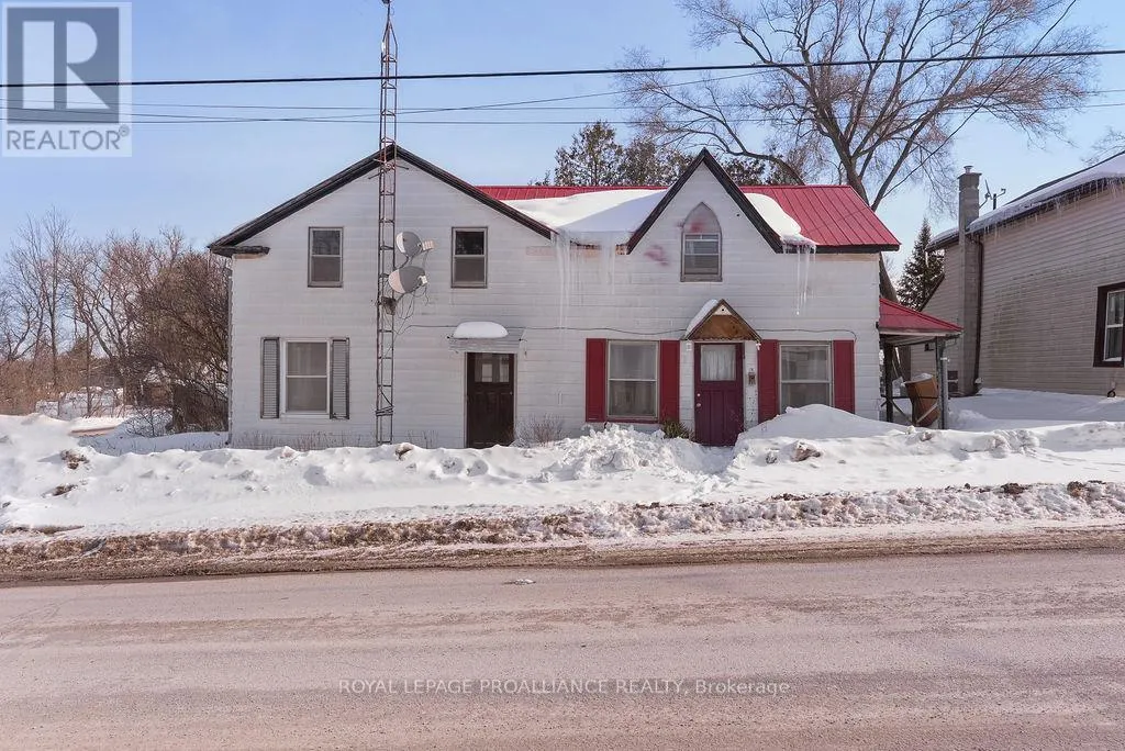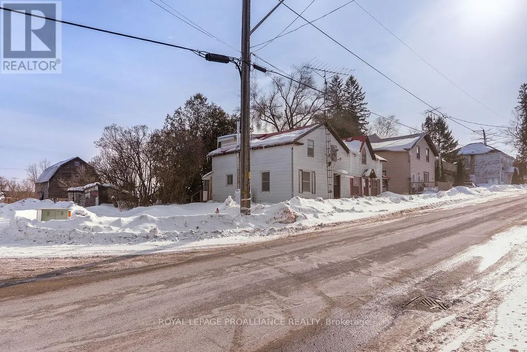 Positioned on a generous corner lot on Thomas Street in Thomasburg, just seconds off Highway 37, this duplex offers space, flexibility, and outstanding potential for the right buyer. One unit features a functional main floor layout with the kitchen, comfortable living room, and a full 4-piece bath. Upstairs, you’ll find two well-sized bedrooms offering privacy and separation from the main