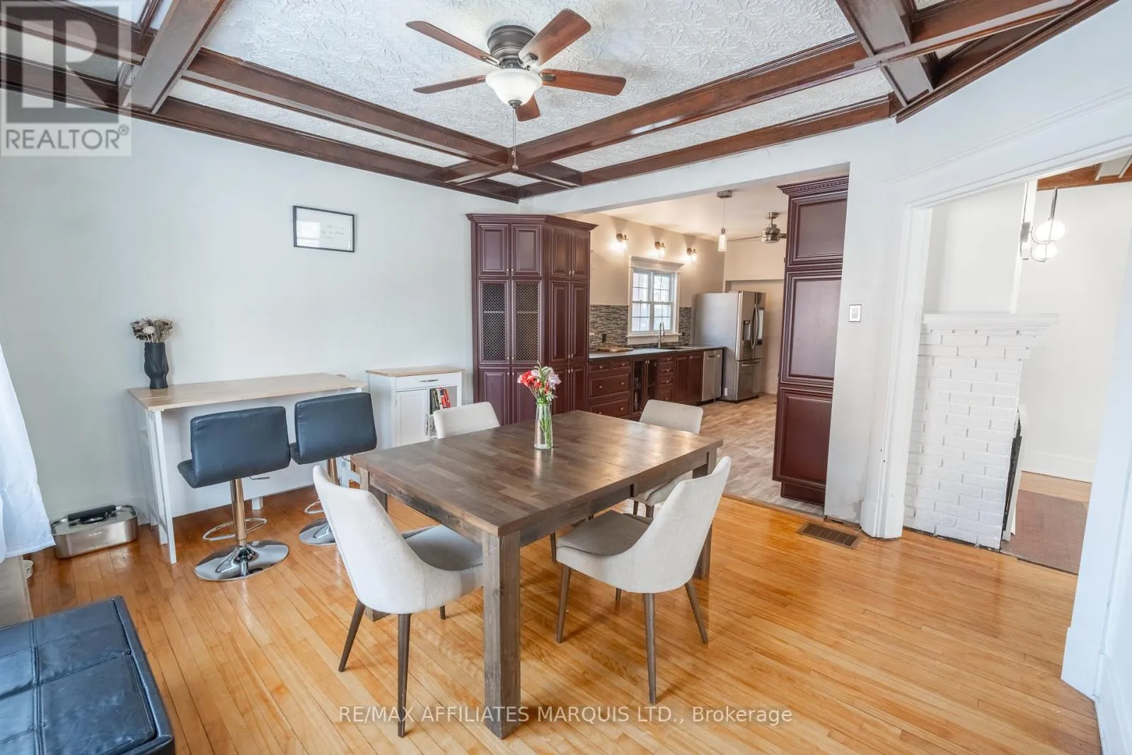 Big on style, small on budget? This large 4-bedroom, 2-bath home delivers space, character, and value in one impressive package! Loft-inspired vibes with soaring box-beam ceilings create warmth and architectural interest throughout. An ornamental fireplace and custom wood stair railings add timeless charm. The kitchen offers abundant cabinetry, pot drawers, ample counter space and an elevated look.