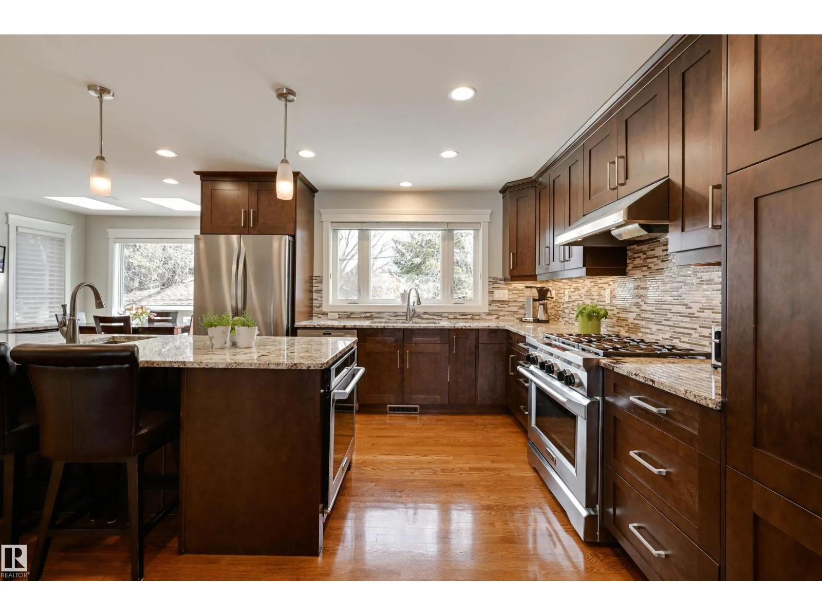 One of a kind in Westmount offering over 2,300 SF modernized by Aquarian Renovations. The kitchen features rich custom cabinetry, pantry, granite counters, tile backsplash, high-end appliances & a massive 13′ L-shaped island ideal for hosting, adjacent to the breakfast nook with direct access to the deck and private backyard—perfect for kids to play. The main floor also offers a