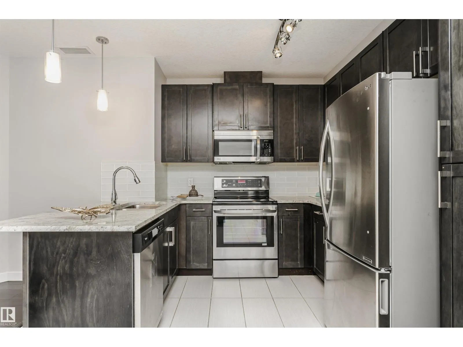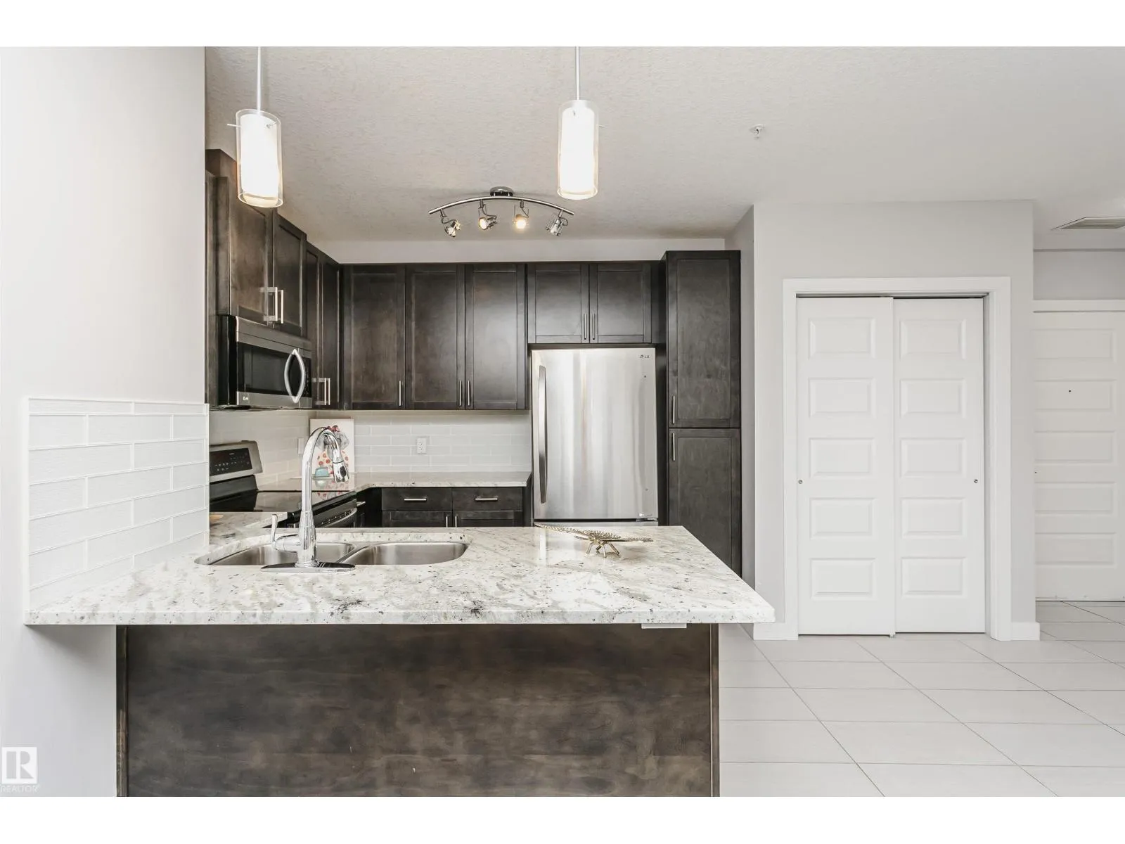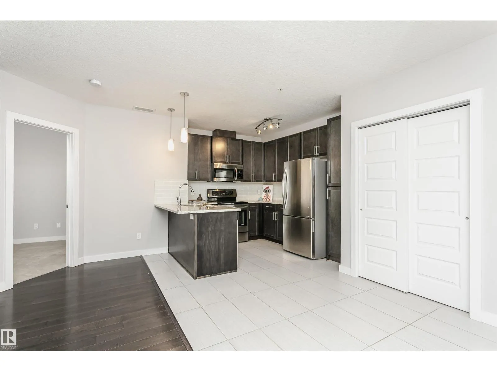 Welcome to Ambleside in Southwest Edmonton. This immaculate 3rd-floor unit features 2 bedrooms, 2 baths, one TITLED underground parking, and in-suite laundry. The open concept floor plan is appointed with a bright and sun-soaked living room, gorgeous kitchen with S.S. appliances, premium cabinetry, quartz counters, and loads of cupboard space. The patio door provides access to the balcony with a