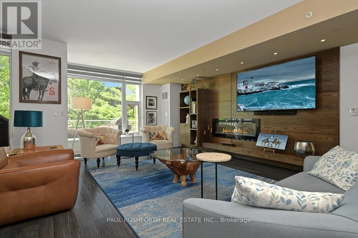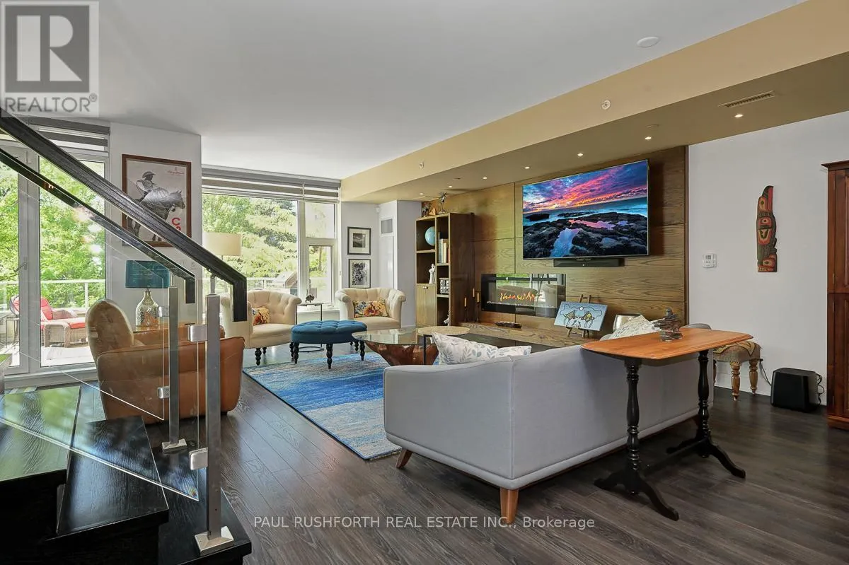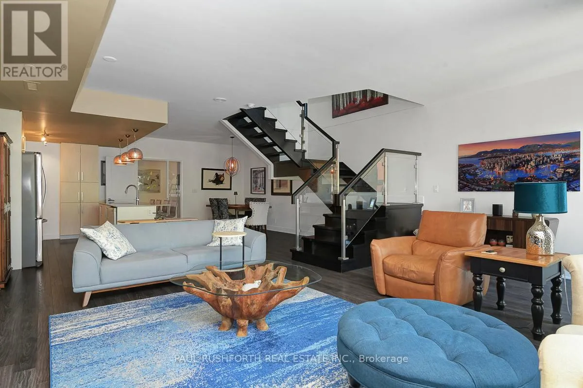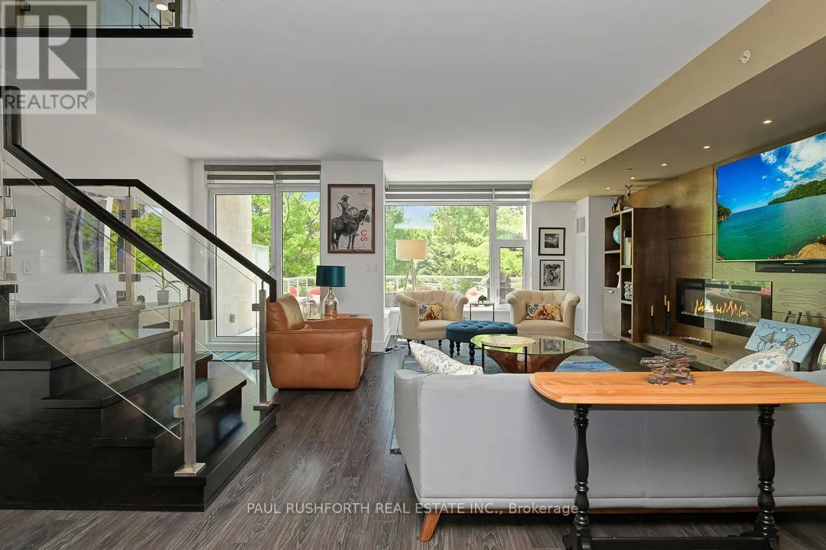 Luxury meets lifestyle at The Rideau in the heart of the Glebe. This stylish 2-bedroom + den, Barry Hobin Designed , 2-storey condo townhome offers a bright, flexible layout with high-end finishes, hardwood floors, and soaring ceilings. The open-concept main level features a sleek kitchen with built-in appliances and an oversized island, flowing into generous living and dining spaces. Walk