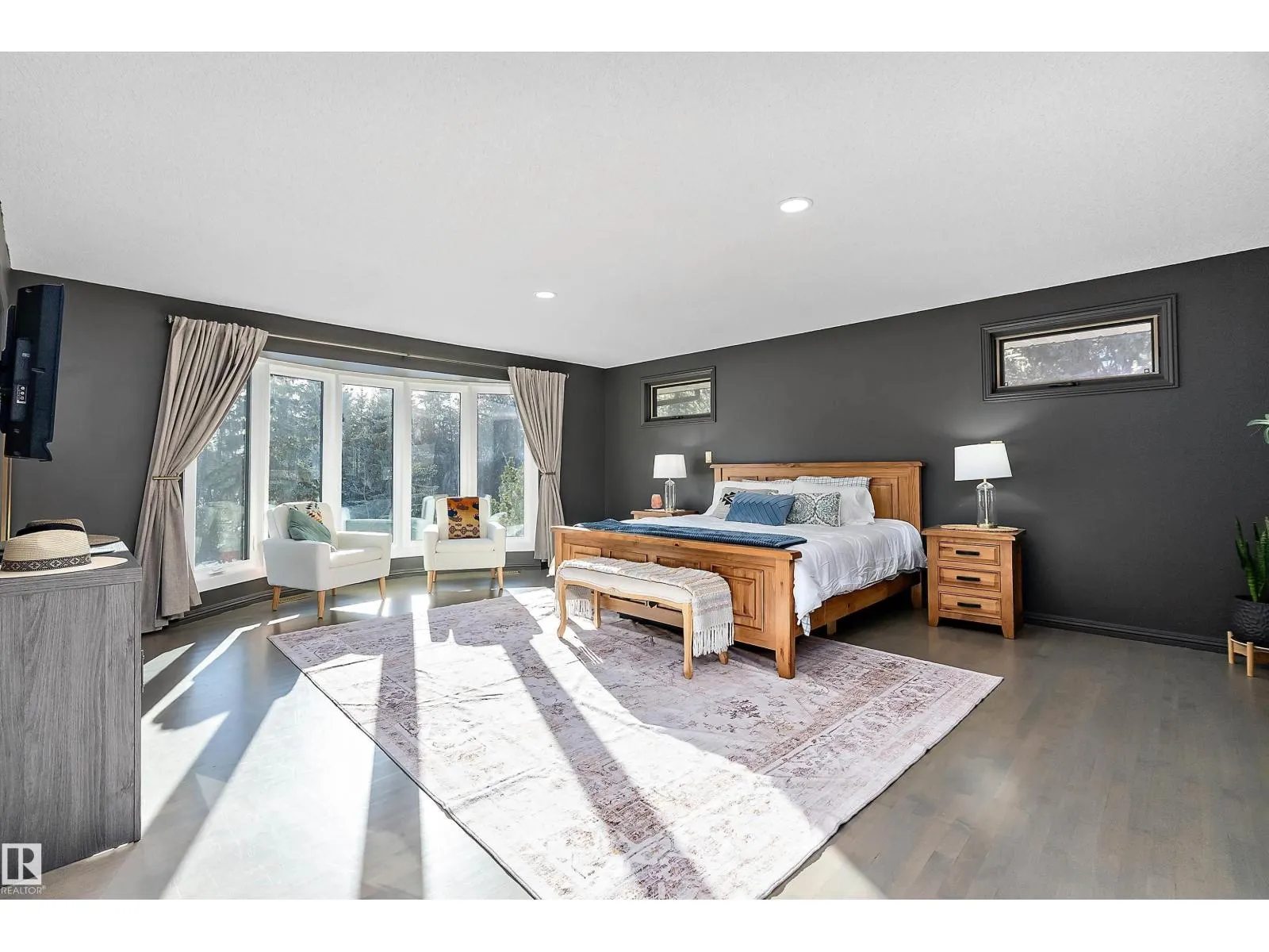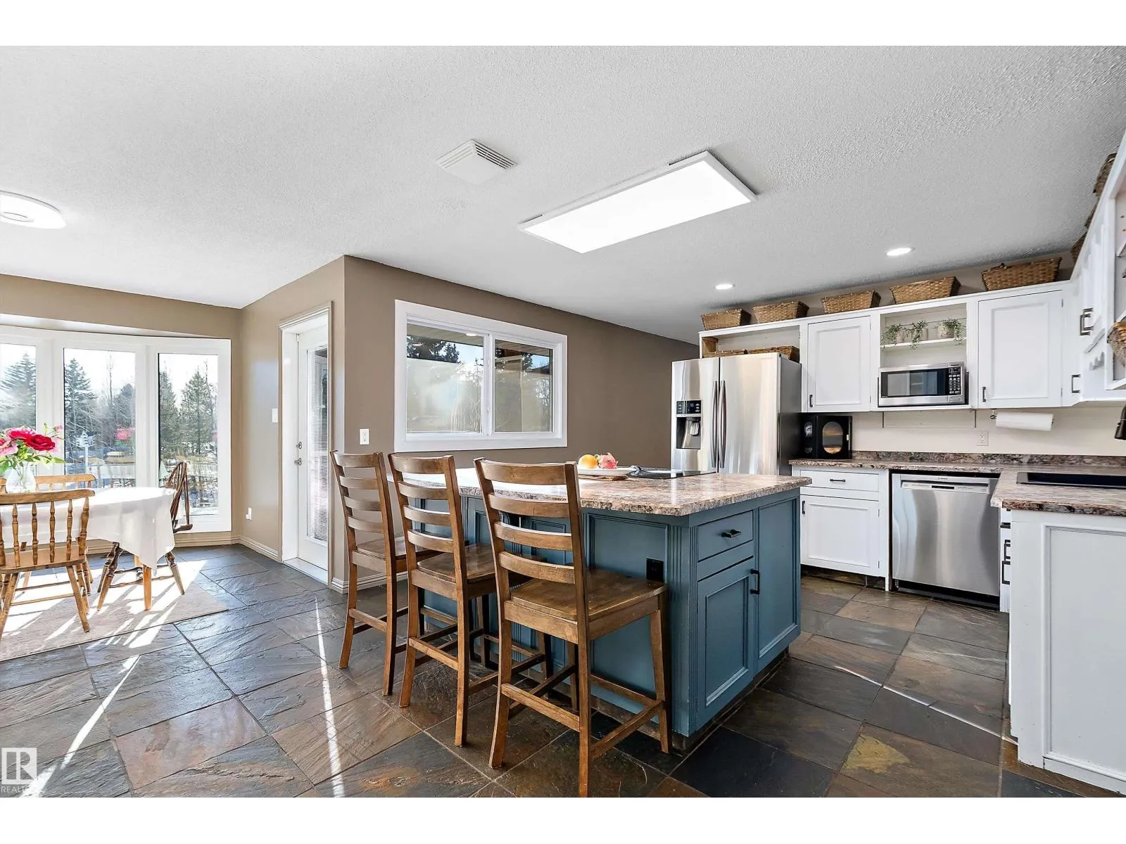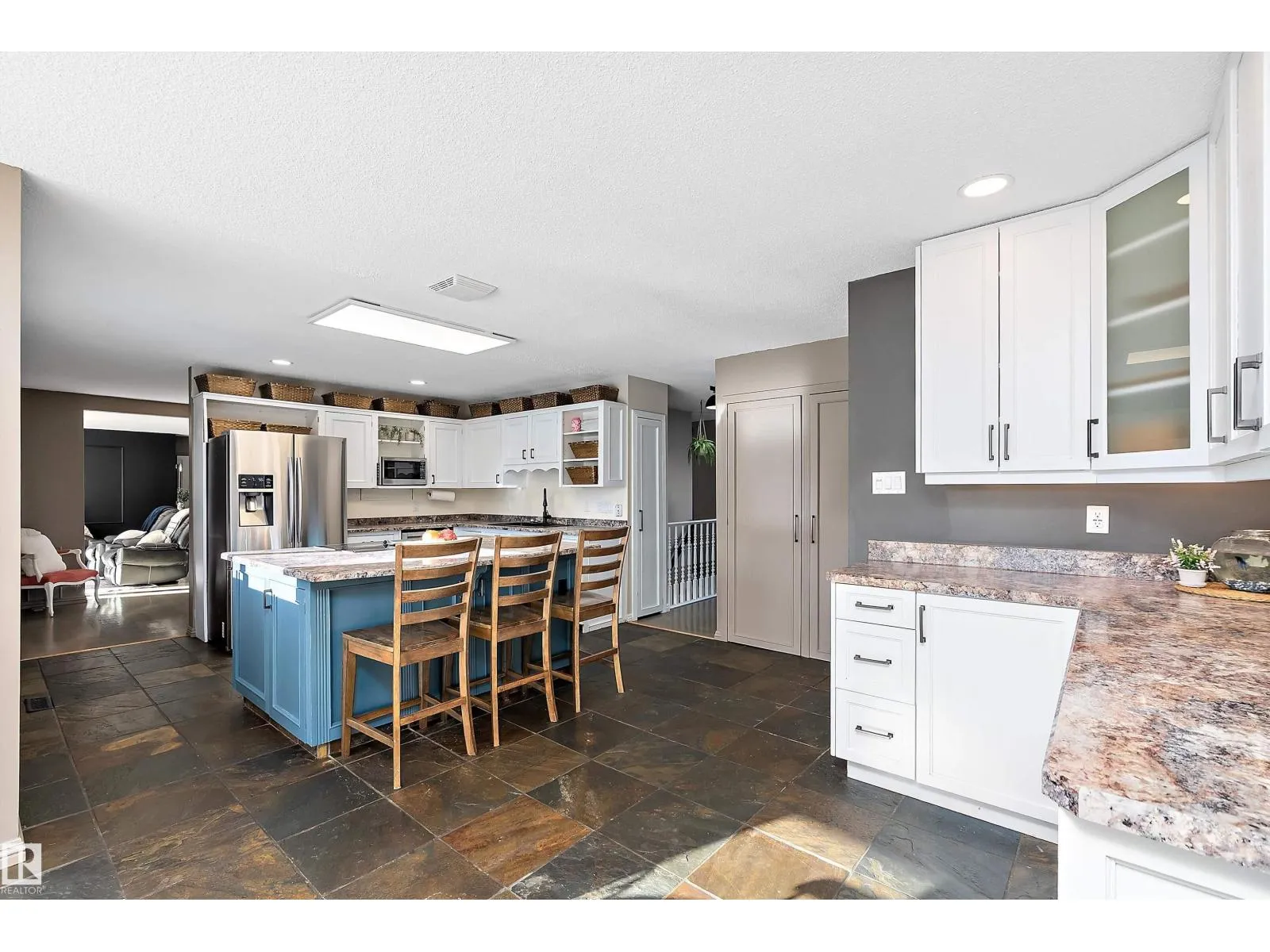 This unique hillside bungalow offers 5 bdrms, 3 bathrooms, a triple heated garage, all enhanced with numerous upgrades & AC, minutes from Sherwood Park. Designed with family living in mind, this home provides ample space for everyone. The spacious kitchen features slate flooring, S/S appliances, pantry, beverage station, & island overlooking the dining area. The great room is bathed in