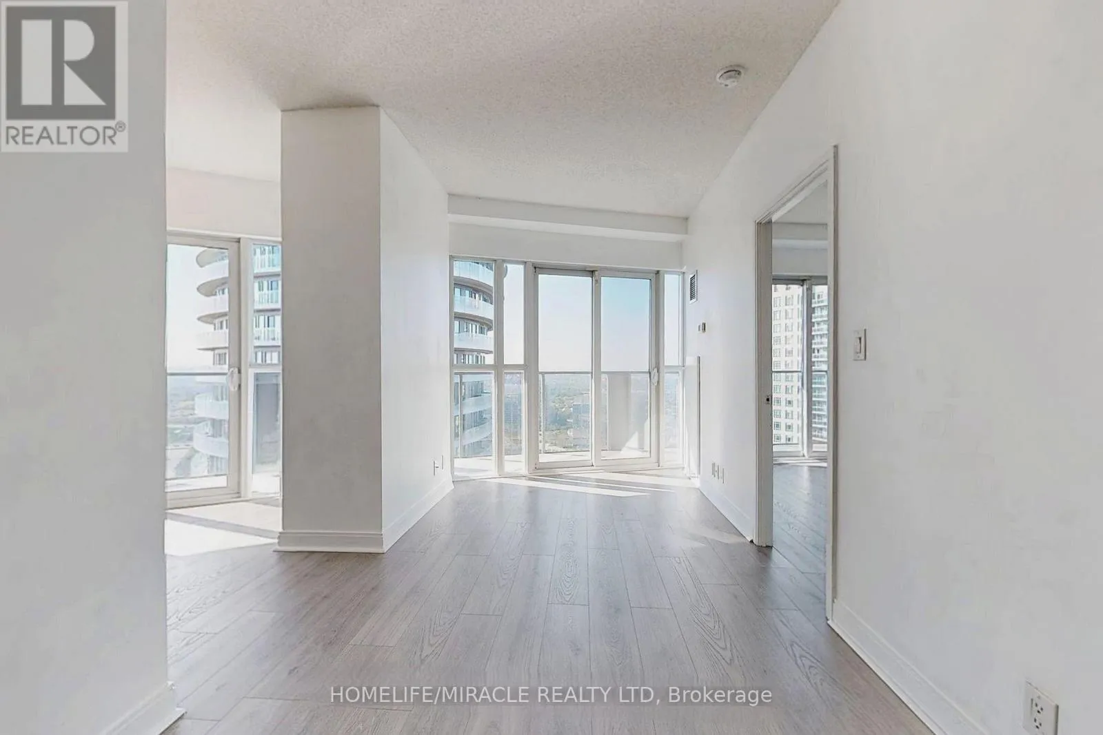 Experience upscale living at the Absolute Towers. This stunning and bright condo has 2 bedrooms, 2 full bathrooms, Northwest exposure and spectacular views of city from the huge wrap-around balcony. This move-in ready condo has many upgrades including brand new laminate floors and freshly painted. Access to balcony from every room. Primary bedroom has 4PC ensuite and mirrored closet. Second
