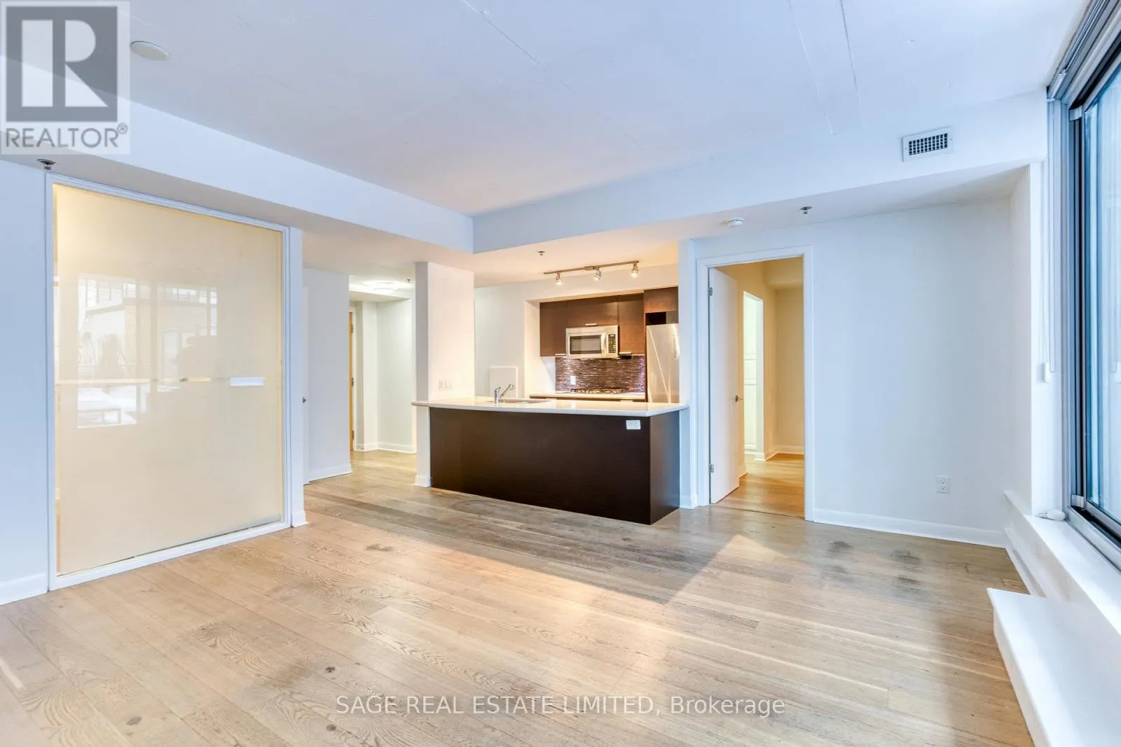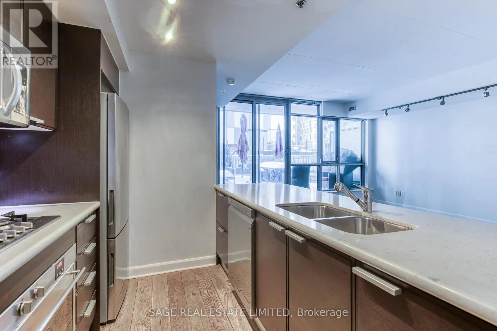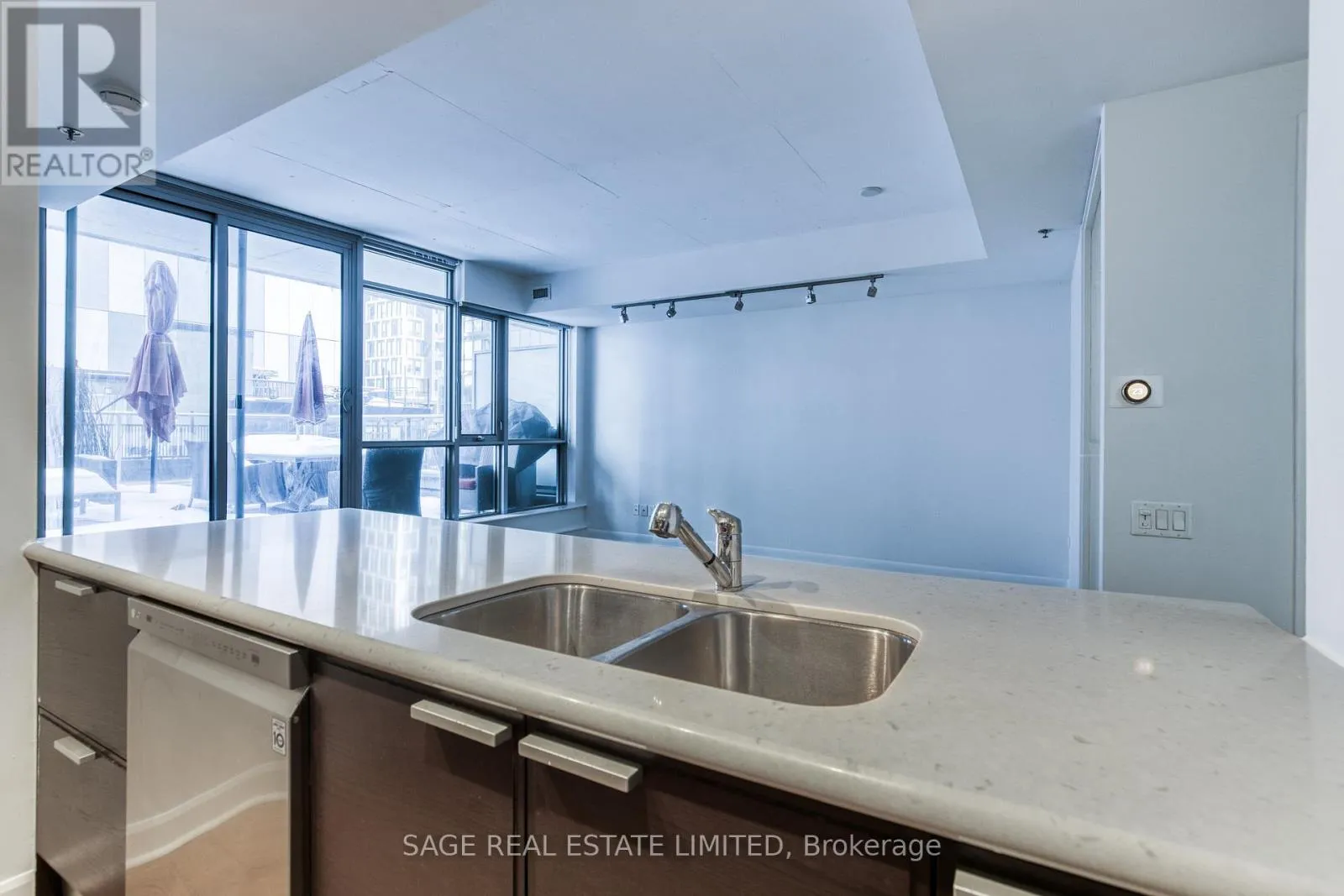 Welcome to M5V Condos! This stylish 2-bedroom, 2-bathroom suite offers a true loft aesthetic with exposed concrete ceilings and a spacious, functional layout. The open-concept living and dining area provides ample room to entertain, while the kitchen features a generous three-seater breakfast bar perfect for casual dining or hosting. A standout feature of this home is the sprawling private terrace,