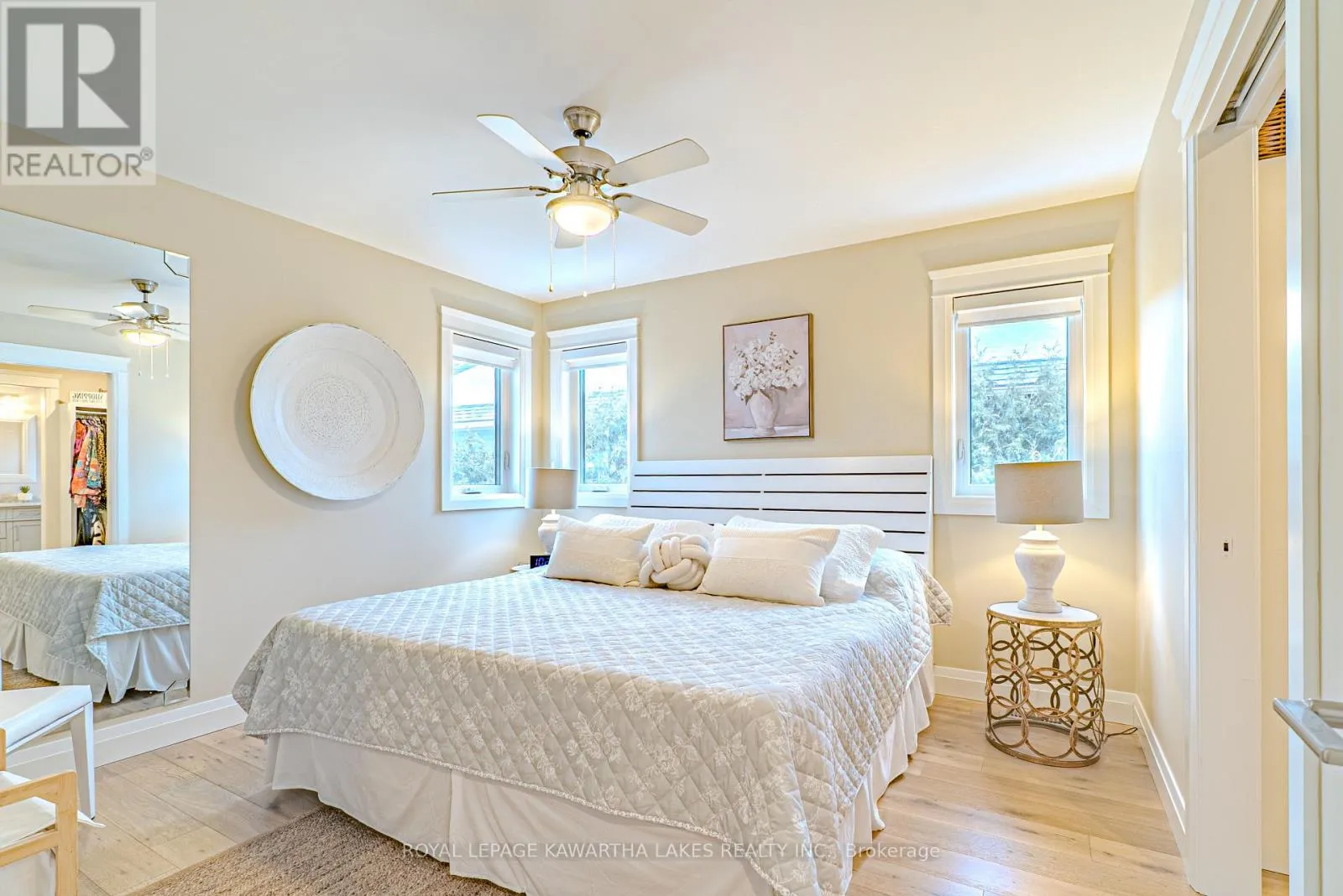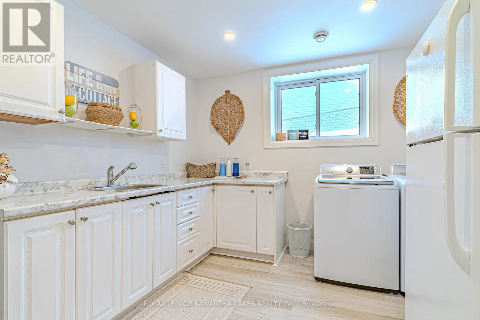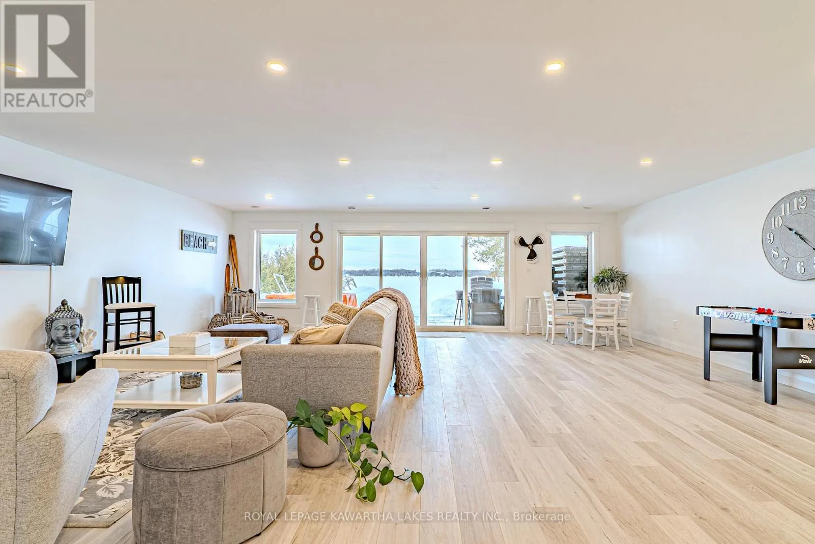 Welcome to effortless waterfront living on sought-after Sturgeon Lake. With 50 ft of clean, sandy shoreline and a private dock, this property offers the perfect blend of relaxation and year-round comfort. Step inside to a bright, airy foyer that opens to a stunning open-concept living space designed around the view. The custom white kitchen features a substantial 5.5 x 7.5