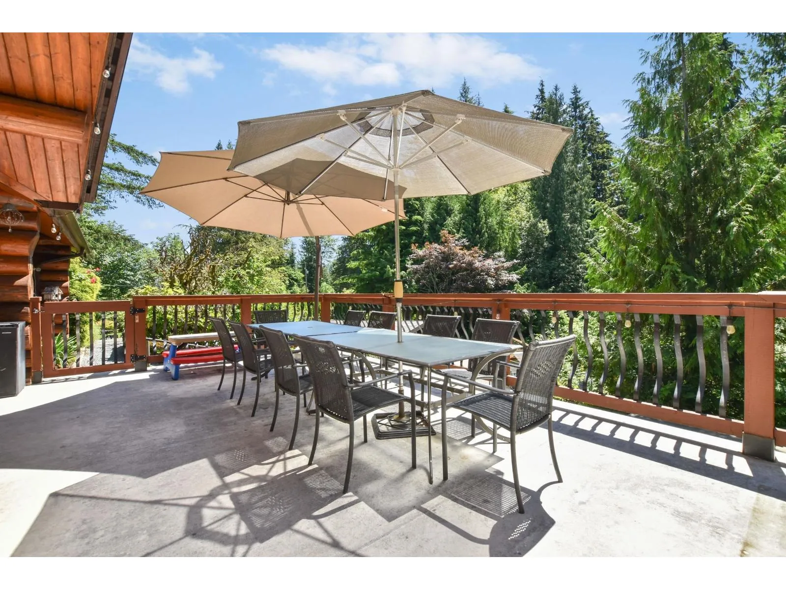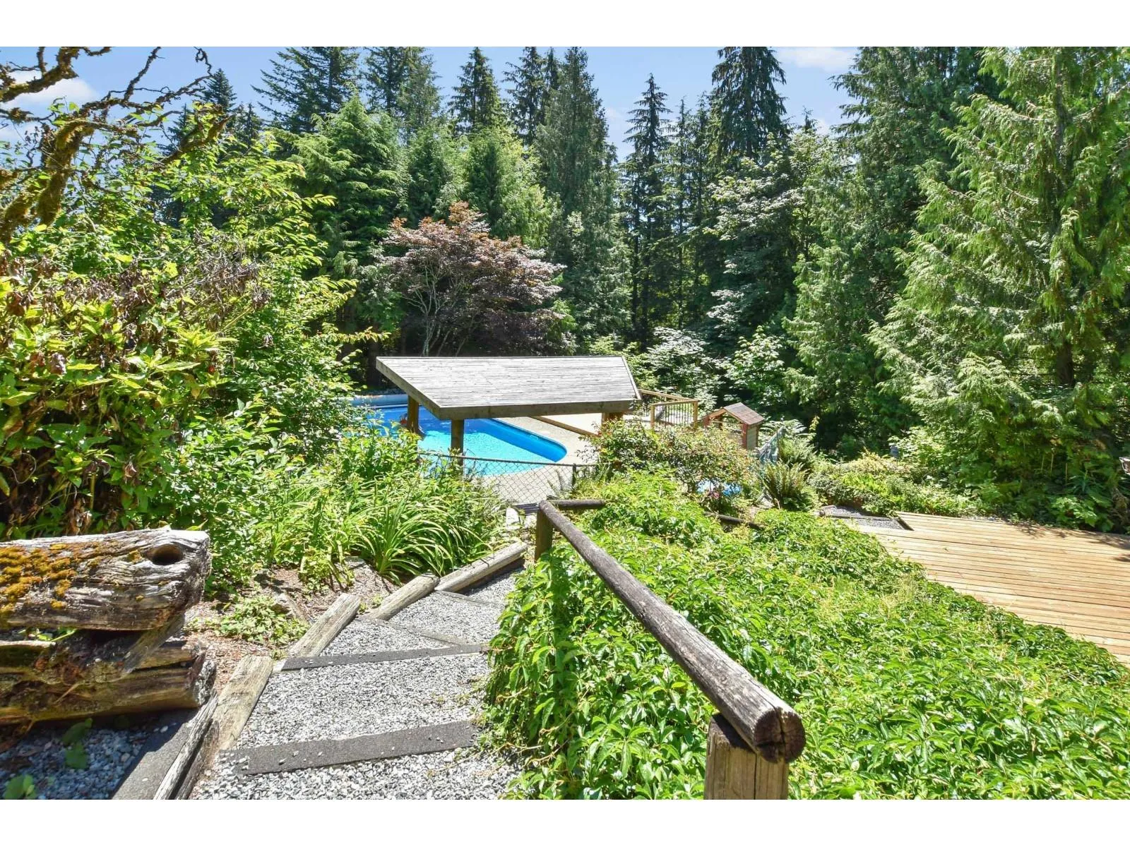 Tucked away at the end of a quiet street, this custom, spruce log home sits on 2.3 acres. Surrounded by nature, this one-of-a-kind property offers the ultimate escape, yet only 10 minutes from Downtown Mission! Whether you love to entertain or simply unwind in peace, this home has it all: sprawling decks and patios, lush gardens, an in-ground pool, your