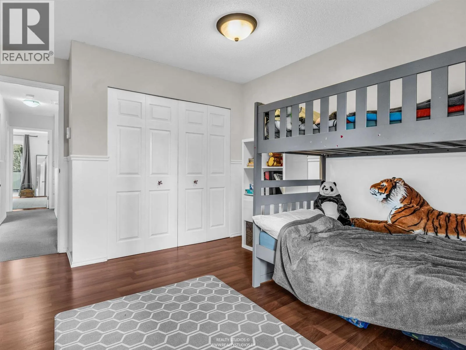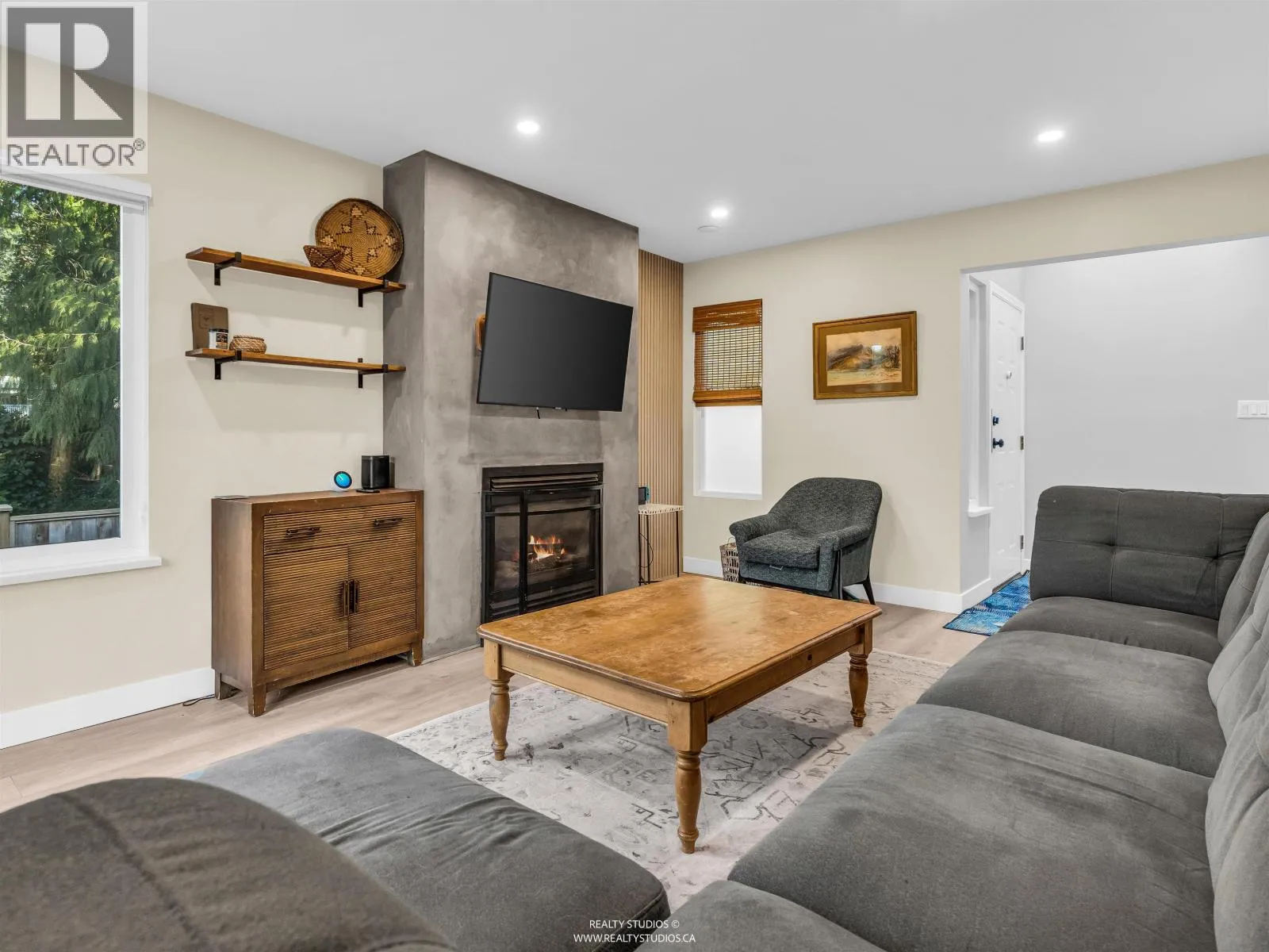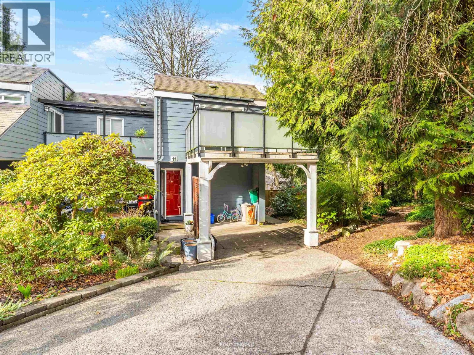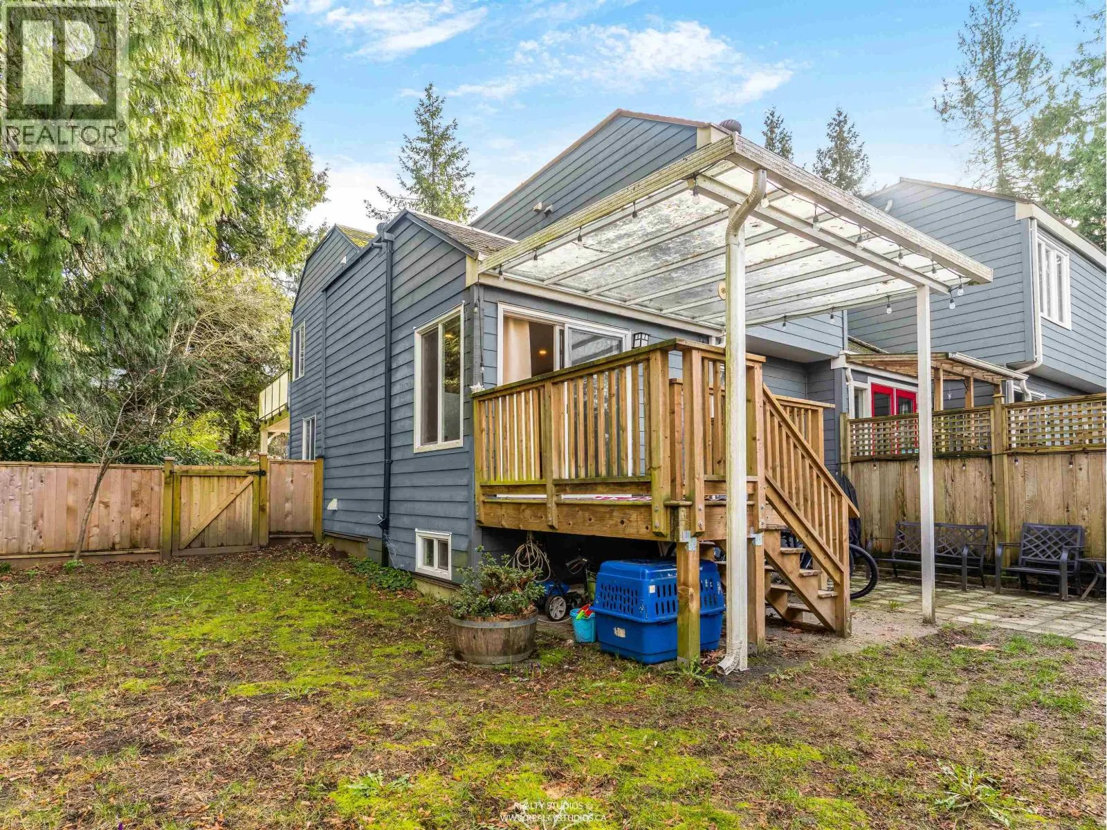 Private end unit townhome with a large fenced yard and deck siding onto tranquil greenspace. 3 bedroom, 2 bathrooms with a beautifully renovated kitchen with white cabinets, quartz counters, gas stove and S/S appliances. Warm gas F/P bright living room. Office plus 2 bedrooms upstairs. Another bedroom & laundry on main. Small, well run complex near Mundy Park, shopping, &