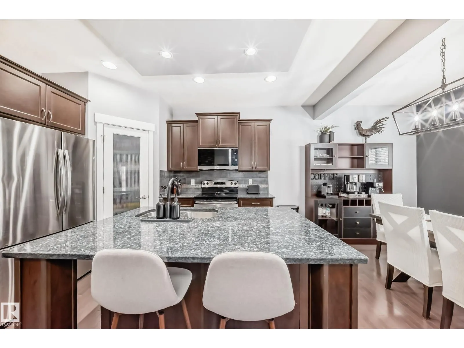Discover this beautifully updated family home in The Hamptons! Step into a bright, tiled foyer leading to a living area boasting rich hardwood floors and a gas fireplace, perfect for cozy evenings. The open kitchen impresses with sleek granite counters, stainless appliances, ample storage, and a walk-in pantry. Dine with a view of your expansive private deck and lush backyard