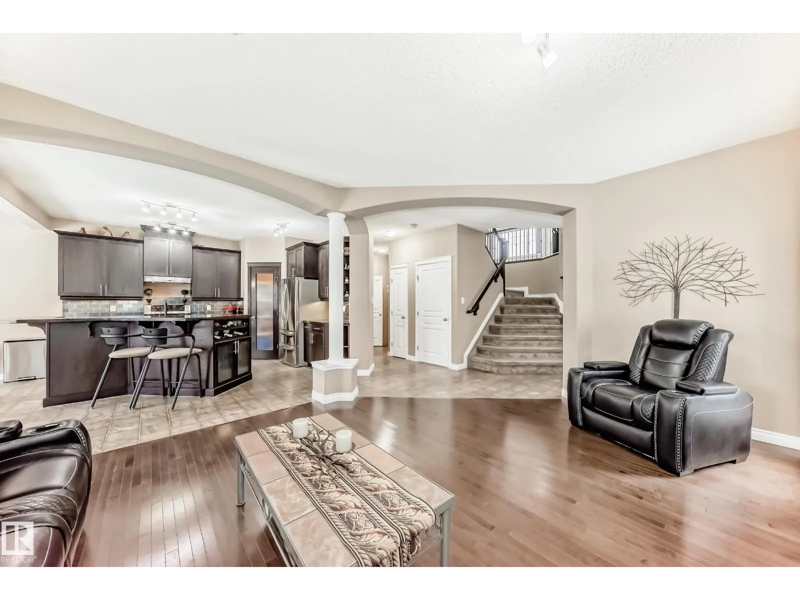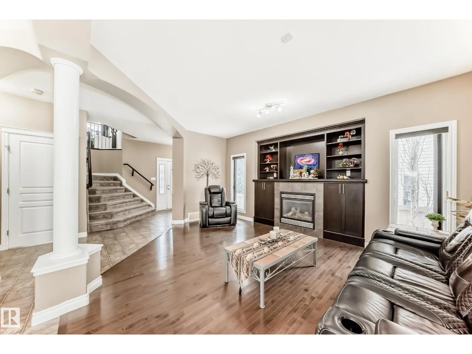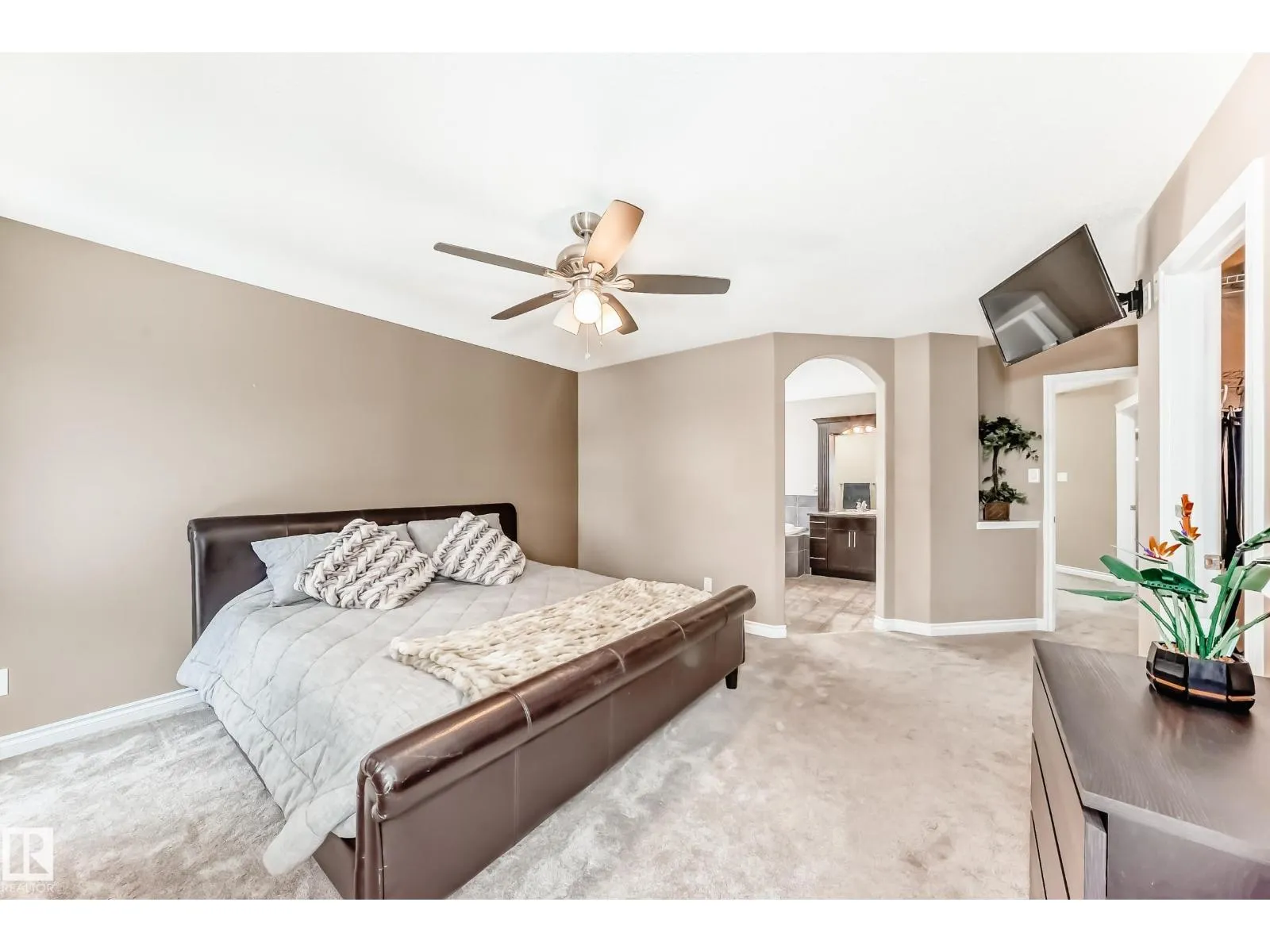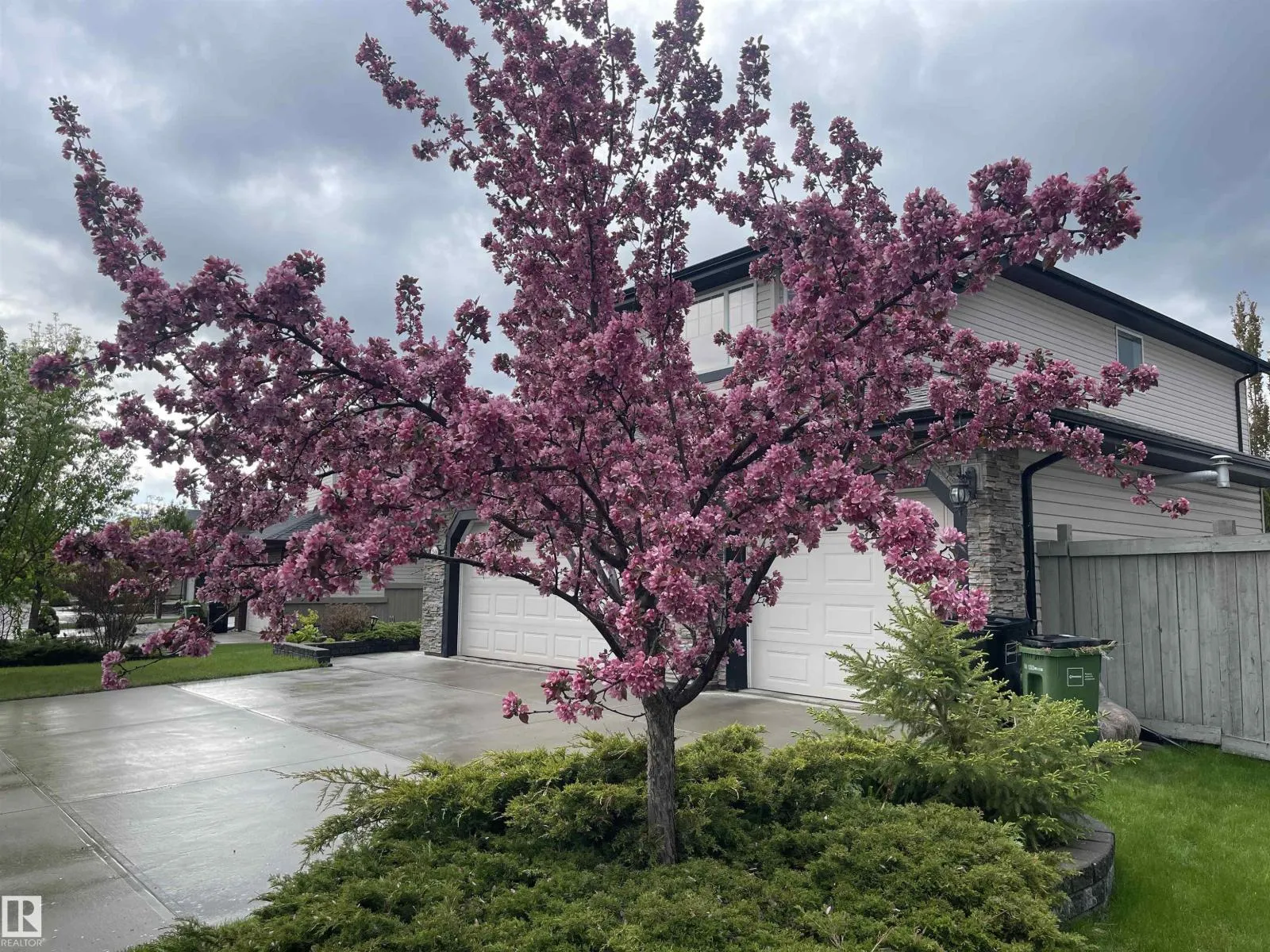 Triple attached heated garage with drive through access to a beautifully landscaped backyard. Located across from a lake, pond, and park, this property offers exceptional lifestyle and views. The private yard features a mature elm tree, rare double grafted purple and pink lilac, and a stunning mature pink hydrangea in the front. Rear access allows parking for a boat or