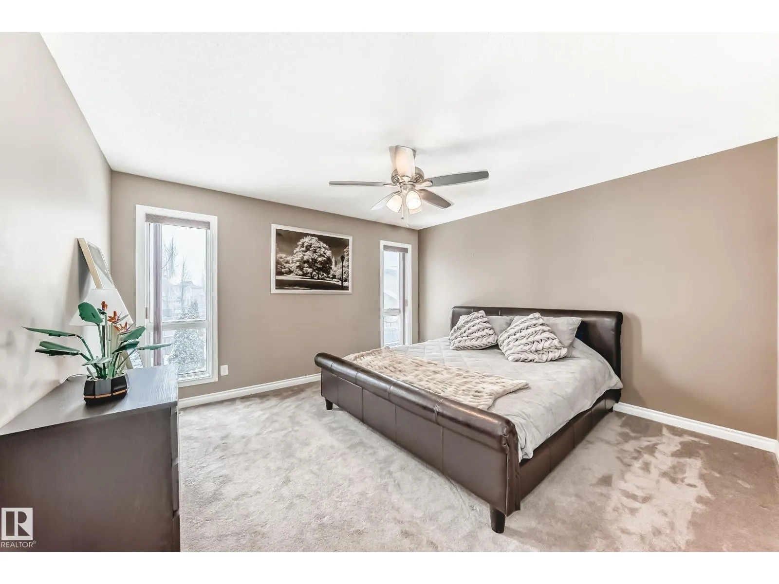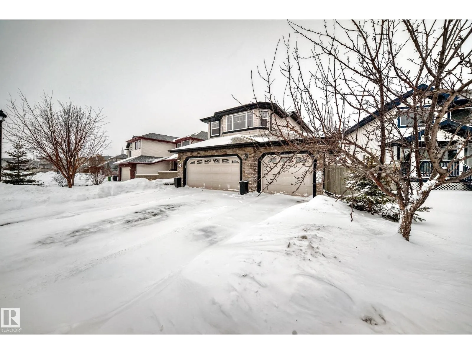 Triple attached heated garage with drive through access to a beautifully landscaped backyard. Located across from a lake, pond, and park, this property offers exceptional lifestyle and views. The private yard features a mature elm tree, rare double grafted purple and pink lilac, and a stunning mature pink hydrangea in the front. Rear access allows parking for a boat or