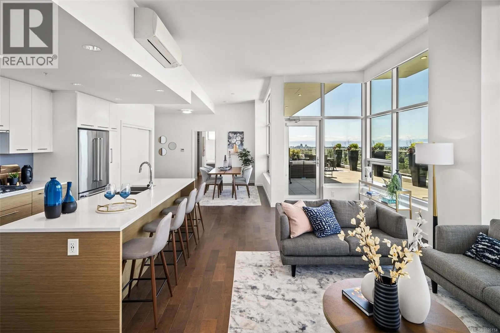 Open House: Saturday 11-1. A Rare Penthouse Offering. The premier residence in this steel and concrete development and one of only two on its floor, this home is truly without equal. Nearly 1,600 sq.ft. of private terraces showcase 300° views from downtown Victoria to the Sooke Hills and Olympic Mountains. Inside, 1,568 sq.ft. of light-filled space features vaulted ceilings, expansive