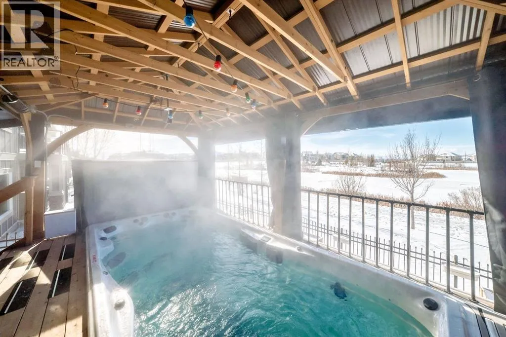 home. The stunning kitchen is the heart of the home, showcasing quartz countertops and stainless steel appliances that were updated just one year ago including a gas range with hood fan and a large walk through butlers pantry with plenty of built in custom storage and a coffee bar. The double attached garage is fully finished, heated with appoxy flooring and storage space for all your tools and toys. The kitchen area seamlessly flows into the sun filled dining and living area with cozy gas fireplace with stacked stone surround and built in shelving framed by expansive windows with breathtaking MOUNTAIN VIEWS. Step out onto the full length upper deck with a convenient gas line for your BBQ and take in the peaceful setting backing onto scenic walking paths and the beautiful Sunset Ridge pond. Upstairs, a spacious bonus room offers the perfect spot for movie nights or a kids’ retreat, while the primary suite provides a luxurious escape with panoramic mountain views, a spa inspired 5 piece ensuite, soaker tub, dual vanities, and a generous walk in shower with rainfall shower head. Two additional large bedrooms and a generous sized full bathroom complete the upper level. The fully finished walkout basement is designed for entertaining, featuring a large family room, wet bar, gas fireplace, fourth bedroom, and a 3 piece bathroom, ideal for guests or extended family. Outside, over $120,000 has been invested in creating a backyard oasis, highlighted by a fully enclosed, year-round swim spa with electric blinds for privacy and incredible cedar deck and pergola. (swim spa has been additionally ins ulated on all sides for efficiency). The swim spa area also features LED lighting, projector and screen so you can watch your favourite shows or the game while relaxing. A truly one of a kind backyard making you feel like you are on vacation every day! Sunset Ridge is known for its active, family friendly lifestyle, offering over 5 km of scenic pathways, parks, playgrounds, a central park, a 6 acre freshwater pond, and access to excellent nearby schools including walking distance to RancheView School(K–8) and St. Timothy’s High School. With its premium location, incredible views, and impressive upgrades, this home truly has it all, an outstanding opportunity in one of Cochrane’s most desirable communities and locations. Book a showing today! (id:62650)