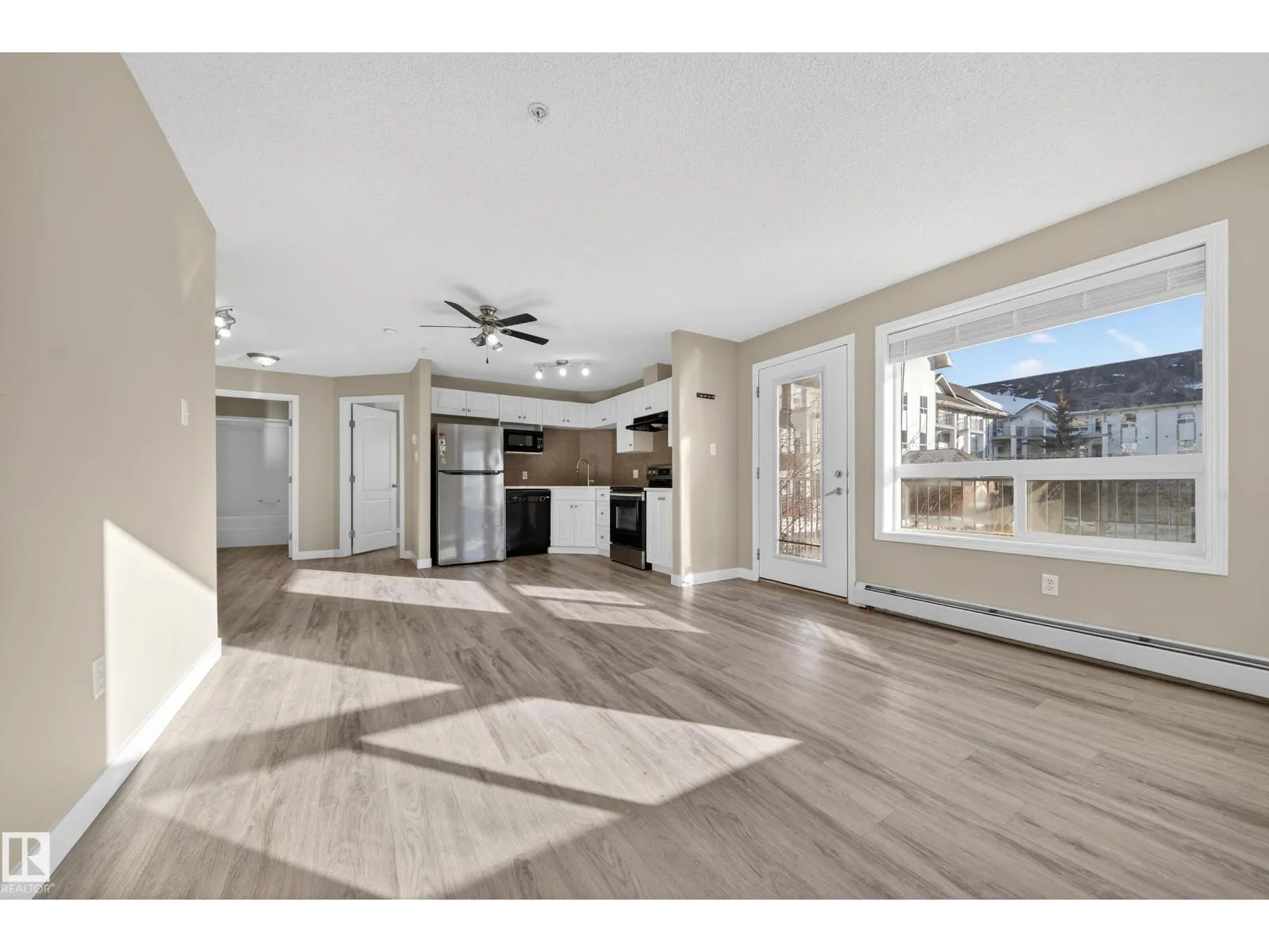 Incredible value! Own this newly renovated, beautifully finished 2-bed, 2-bath corner condo just steps from the LRT and shopping, with quick access to Hwy 15. This bright second-floor end unit offers extra windows, a spacious wrap-around deck, in-suite laundry, stylish modern upgrades, and 6 appliances. Heat, water, and sewer included, low condo fees, and no age restrictions, a must-see opportunity.