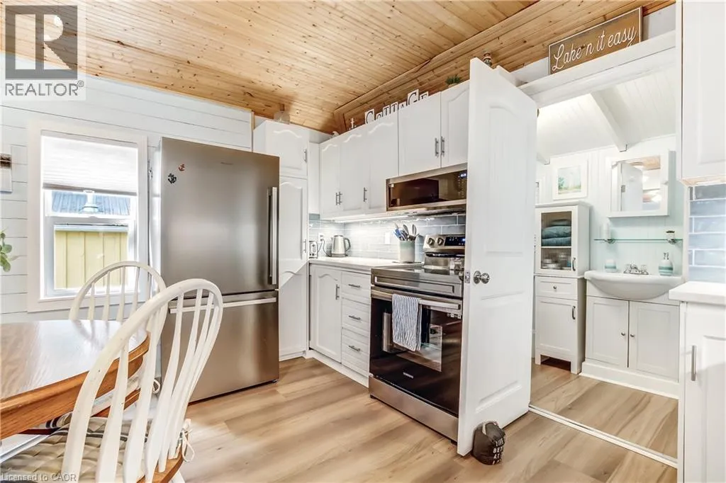 Take a look at this lakeside 3 bedroom raised and renovated cottage. Lots of updates in this attractive property, with new vinyl plank flooring throughout with new pine shiplap in most of the living room. Kitchen features stainless steel appliances, upgraded kitchen counter top, sink and back splash. 2 heat-pumps for maximum heating and cooling. You’ll love the new window