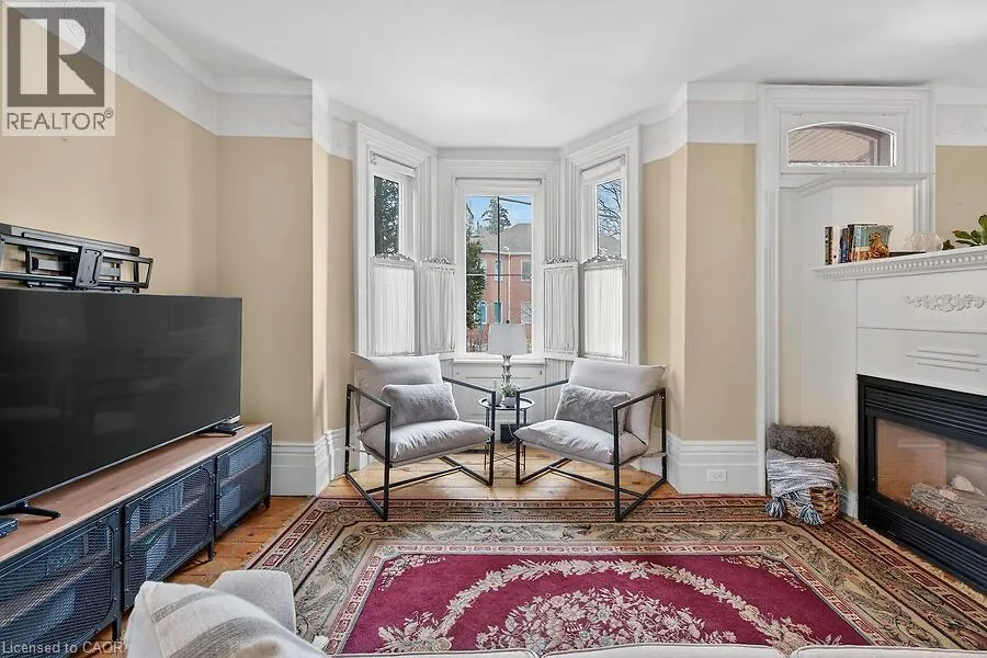 Welcome to 149 Argyle St. N., a charming Victorian home filled with original character and period details, blended with everyday modern comforts. This spacious property features large principal rooms and tall ceilings and windows. The main level offers a generous eat-in kitchen, formal dining room, and living room with a double-sided gas fireplace and two impressive bay windows that bring
