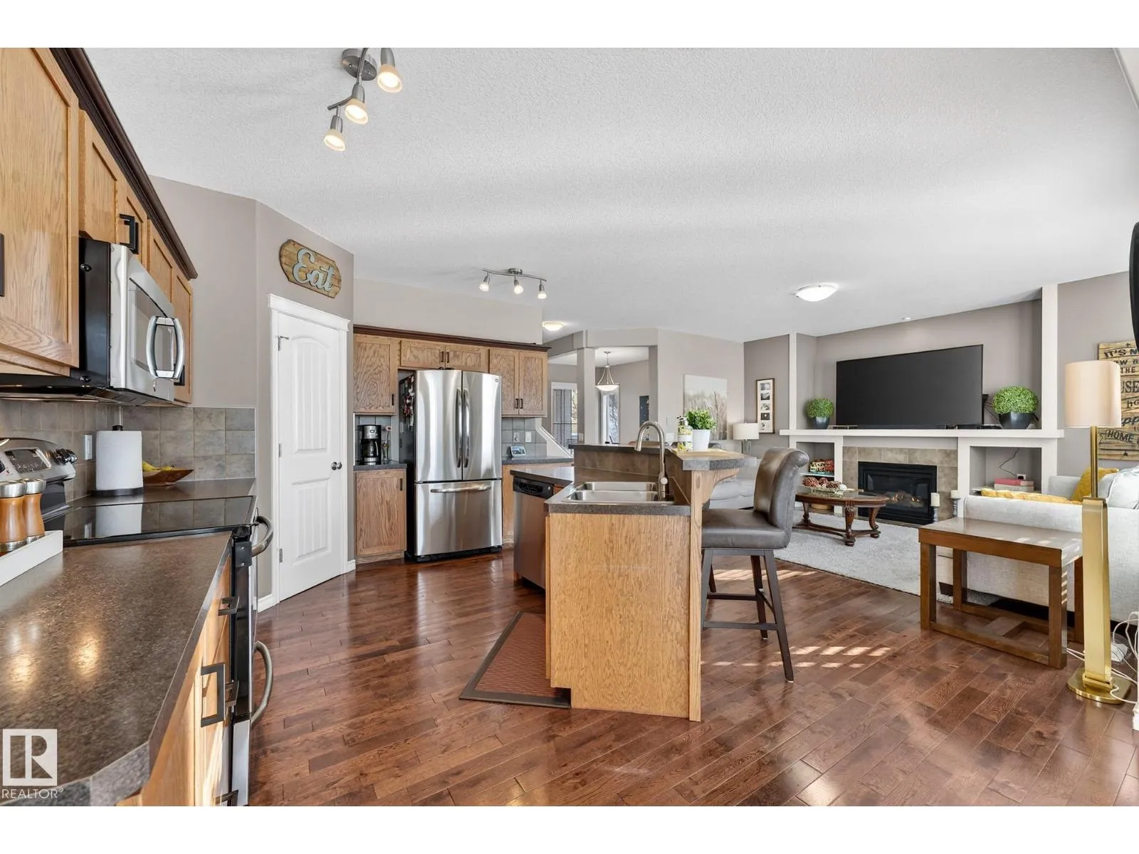 Welcome to this beautifully maintained 2,233 sq ft two-storey home with a double attached garage, located in the highly sought-after community of Walker. The main floor features rich hardwood flooring, 9′ Ceiling and large west-facing windows that fill the home with natural light. The elegant family room is highlighted by a cozy gas fireplace, creating the perfect space to relax.