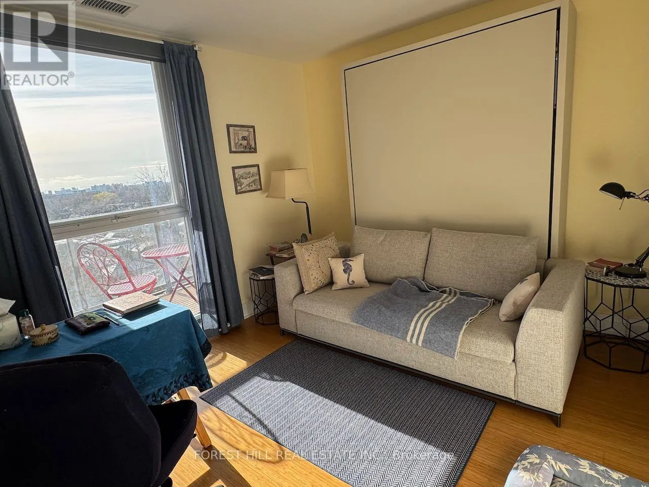 Welcome to The Rushton Residences, a rarely available boutique building with just 27 suites across 9 storeys, offering exclusive low-rise luxury living in the heart of Wychwood. Opportunities in this coveted building are few and far between.This sun-drenched, south-facing 1bedroom suite offers over 700 square feet of thought fully designed living space, complemented by a private balcony with beautiful treetop