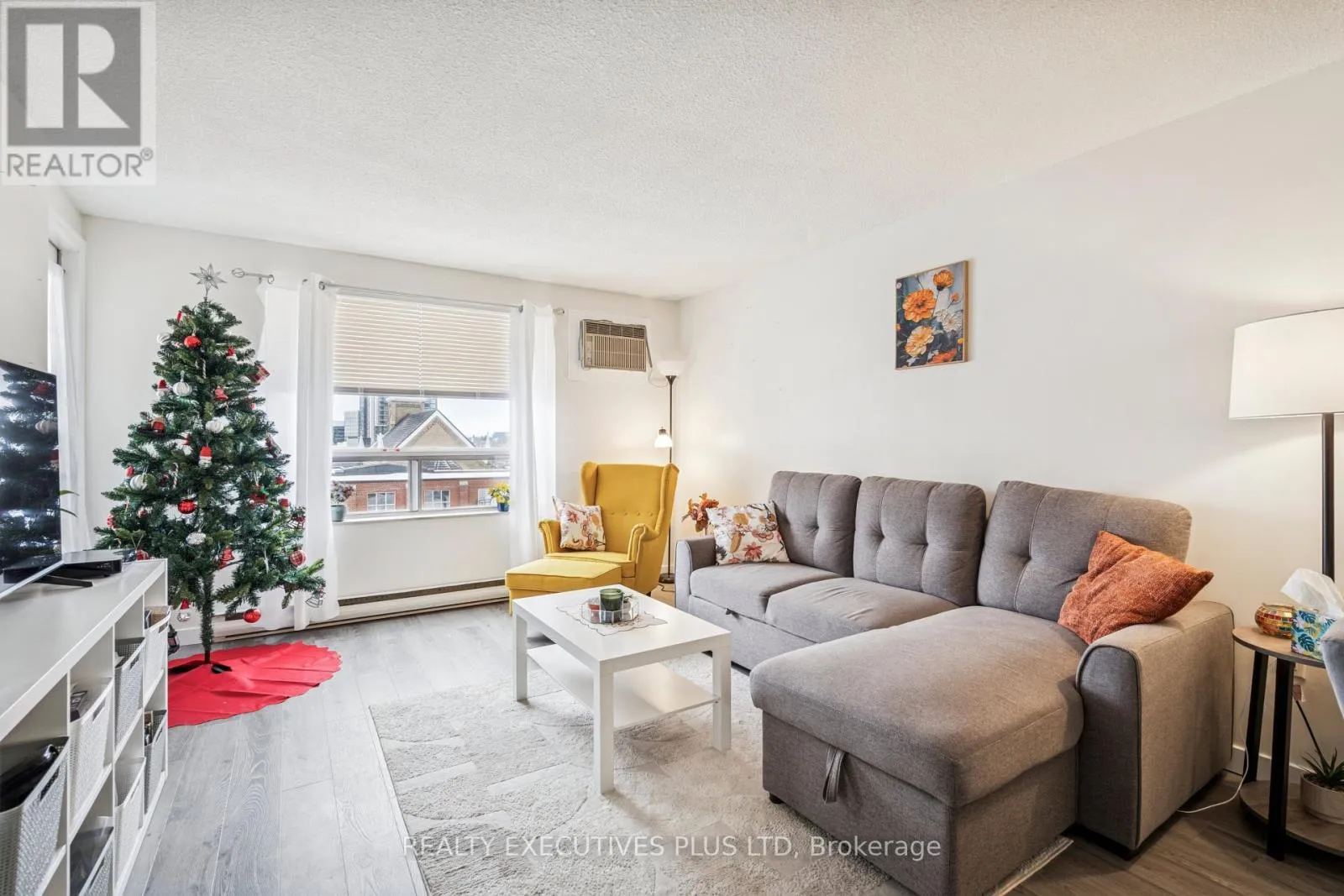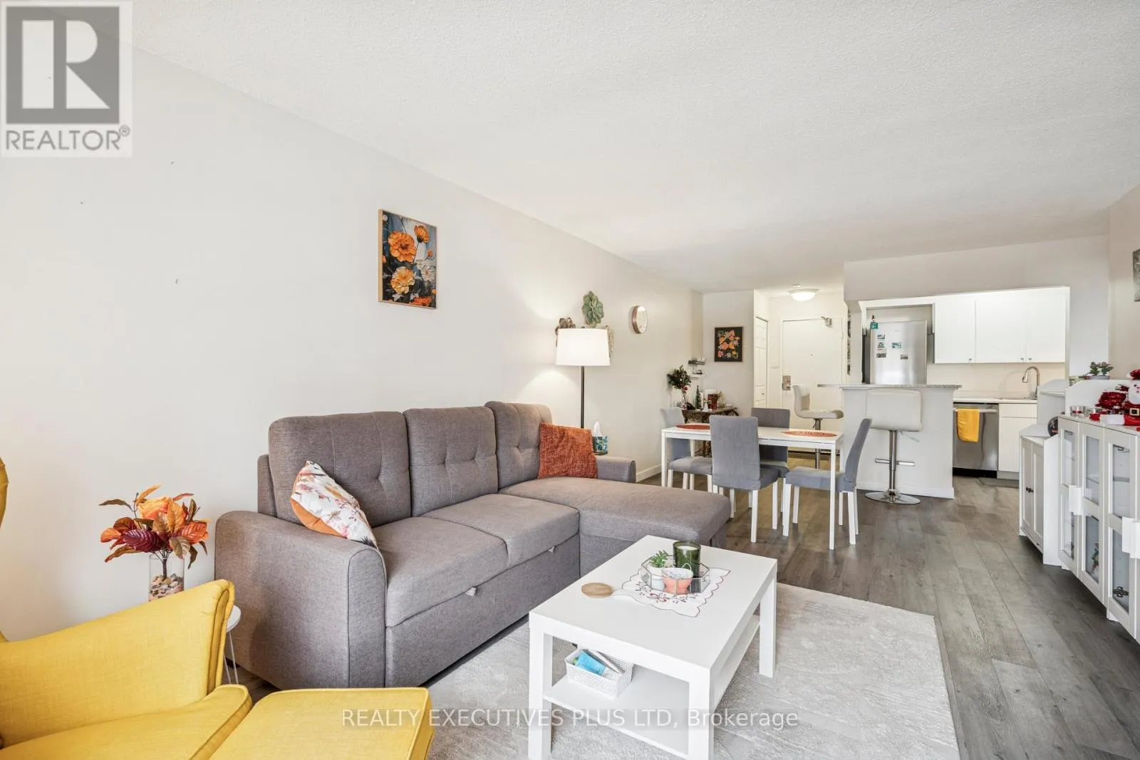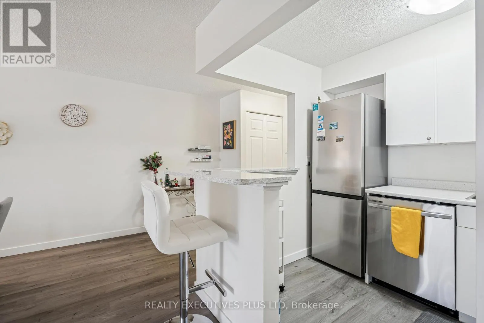Located in the heart of downtown Kitchener, this fully renovated 1-bedroom condo offers turnkey urban living with secure underground parking and an owned storage locker. The open-concept layout features a modern kitchen with quartz breakfast bar, stainless steel appliances, new flooring, and fresh paint throughout. The spacious living area easily accommodates a dining table or home office and opens to