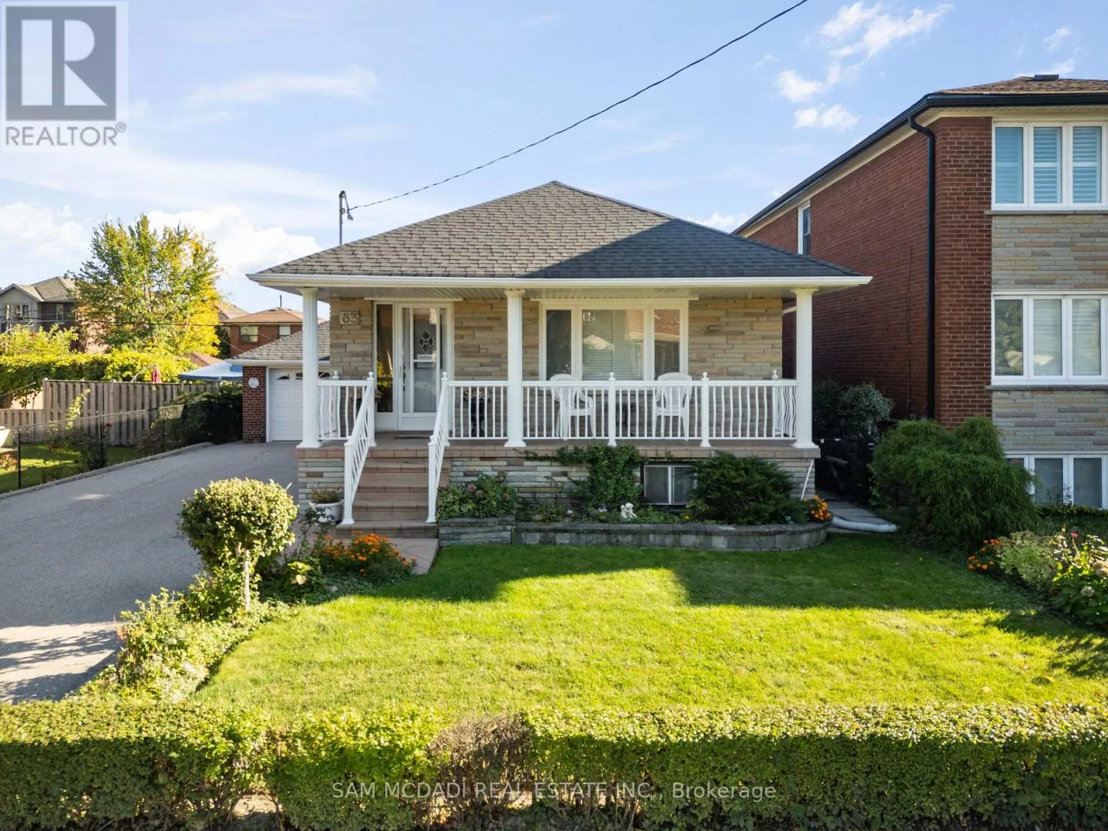Welcome to 83 Evans Avenue, Toronto – an elegant raised bungalow on a rare 49′ x 125′ lot that blends classic curb appeal with refined old-world charm; the main floor offers three well-proportioned bedrooms including a bright primary bedroom, a welcoming living and dining area with large windows and a functional kitchen suited to everyday family life. Descend to a