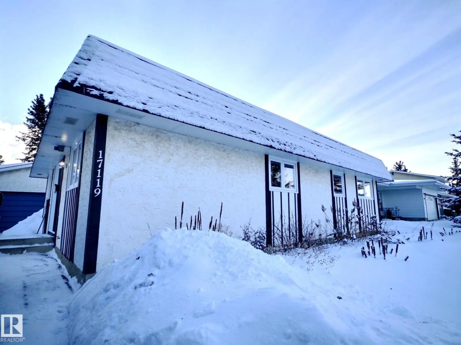 This Gorgeous 1237 sq.ft bungalow with $100k in upgrades blends modern style with everyday comfort. Upgrades include a new roof, windows, doors, driveway, hot water tank, full kitchen and bath renovations, and flooring. Stepping into the warm and welcoming home is the kitchen, featuring an apron sink, warm butcher block counters, new appliances, subway tile, and an island that connects